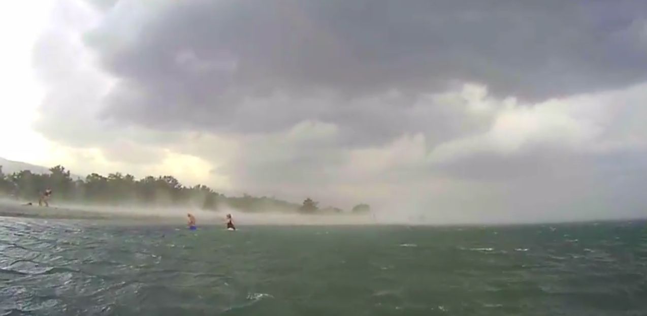 Η ίδια βρισκόταν μέσα στη θάλασσα στην παραλία του Στομίου εκείνη την ώρα και κατέγραψε με την κάμερά της ένα βιντεάκι που διέθεσε στο trikalavoice.gr και το οποίο κόβει την ανάσα. Διακρίνονται οι λουόμενοι να εγκαταλείπουν πανικόβλητοι τη θάλασσα και το μπουρίνι να σαρώνει τα πάντα στο πέρασμά του.