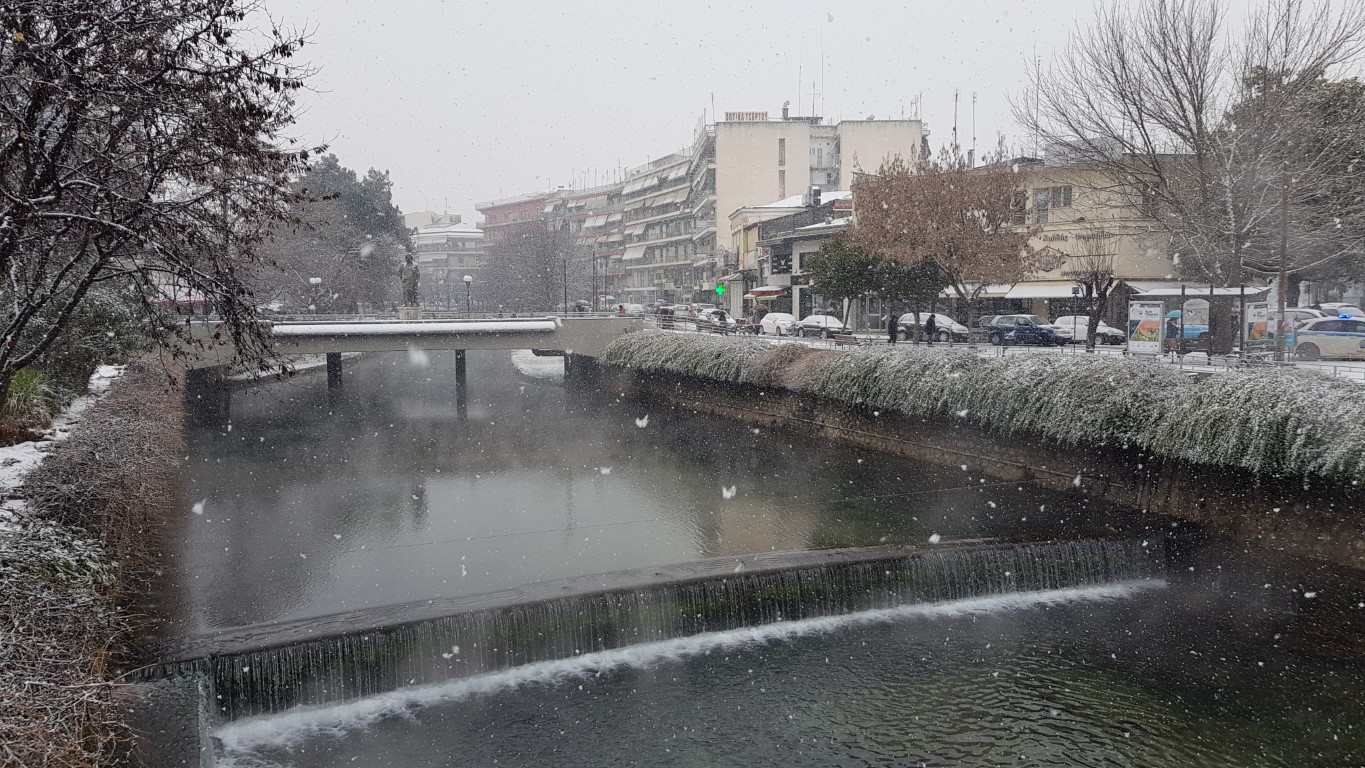 Λίγο πριν τις 9 π.μ. του Σαββάτου ξεκίνησε η χιονόπτωση και μέσα στην πόλη των Τρικάλων.