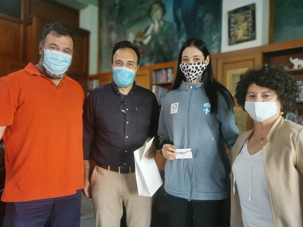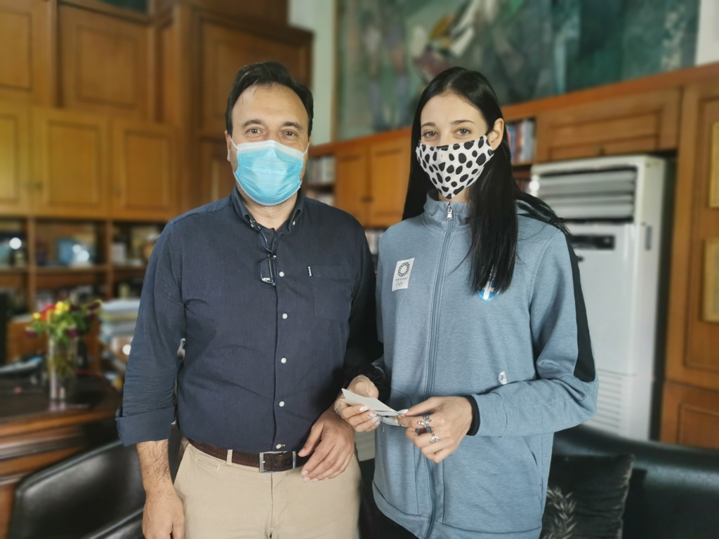 Το μεσημέρι της Δευτέρας 10 Μαΐου 2021 η πρωταθλήτρια που θα εκπροσωπήσει τη χώρα μας στους Ολυμπιακούς Αγώνες του Τόκιο, επισκέφθηκε τον Δήμαρχο Τρικκαίων και πρόεδρο της ΚΕΔΕ, Δημήτρη Παπαστεργίου, μετά από πρόσκλησή του.