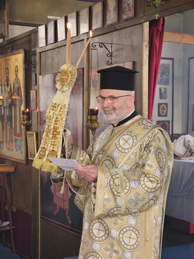 Ο Θεοφιλέστατος εκήρυξε τον θείον λόγον εις την αγγλικήν γλώσσαν, καταδεικνύων την αδιάλειπτον μέριμναν της Εκκλησίας διά τα τέκνα αυτής, όπου γης και αν ευρίσκονται, και μετέφερε τις πατρικές ευχές και ευλογίες του Σεβασμιωτάτου Αρχιεπισκόπου Θυατείρων και Μεγάλης Βρεταννίας κ. Νικήτα. Μετά το πέρας της πανηγύρεως, ακολούθησε επίσημη δεξίωση, κατά την οποίαν ο Θεοφιλέστατος συναντήθηκε με πολλά μέλη της κοινότητος, ενισχύων τους δεσμούς αλληλεγγύης. Ως ένδειξη αγάπης και ευγνωμοσύνης, η κοινότητα προσέφερε στον Θεοφιλέστατο χειροποίητη ιερά εικόνα του Αγίου Δαυίδ.