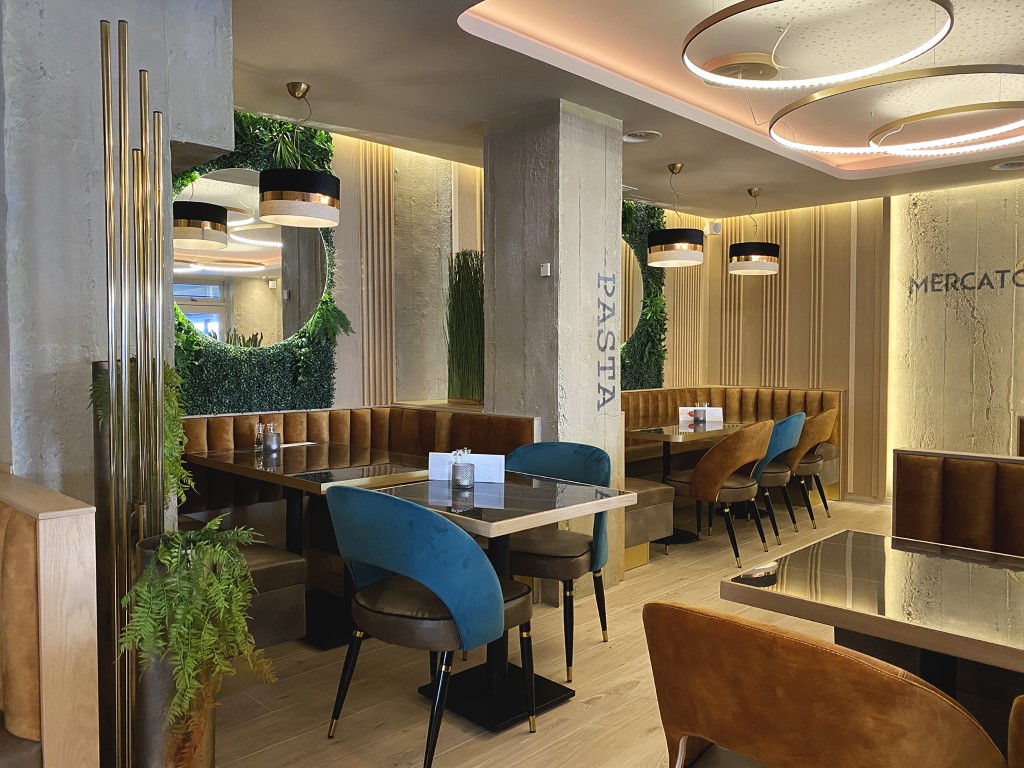 Το MERCATO 9 συνδυάζει κλασσικές και μοντέρνες γραμμές, σε έναν χώρο μοναδικής αισθητικής.