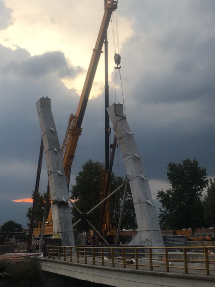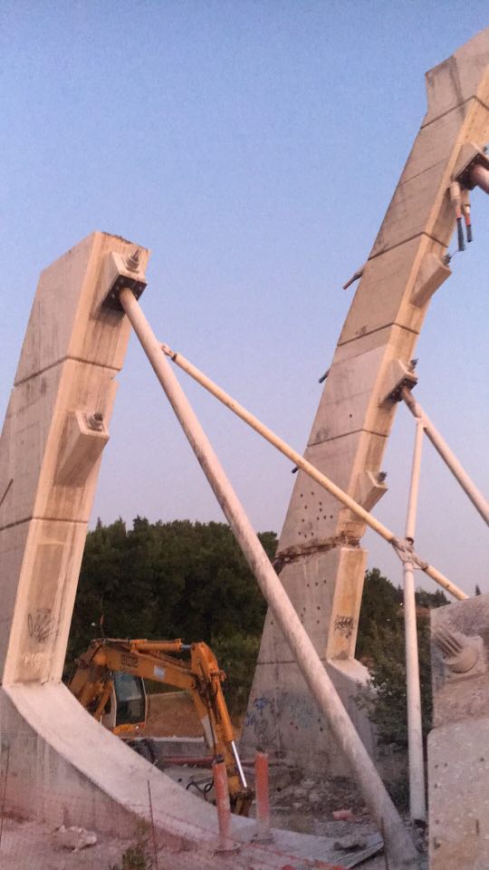 Καθαιρέθηκαν τα καλώδια στήριξής της και απομένει το γκρέμισμα το οδοστρώματος.