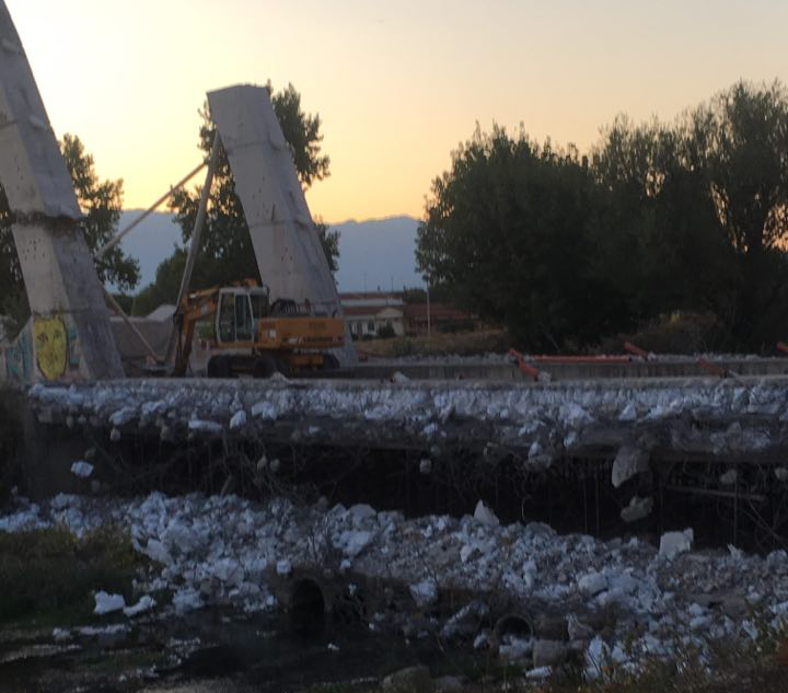 Οι εργασίες καθαίρεσης της γέφυρας ξεκίνησαν εδώ και 15 μέρες και υπολογίζεται ότι θα χρειαστούν άλλες τόσες μέχρι να ολοκληρωθούν πλήρως. Χρειάζεται πολύ προσοχή στην καθαίρεση του οδοστρώματος (εάν τελικά γίνει) ώστε να αποφευχθεί η ρύπανση του Ληθαίου από τα υλικά του.
