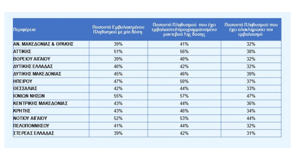 42.706 άνθρωποι είναι πλήρως εμβολιασμένοι, ενώ 53.400 έχουν κάνει την πρώτη δόση. Ο Νομός μας πλησιάζει το 50% κάλυψη όσον αφορά το εμβόλιο.