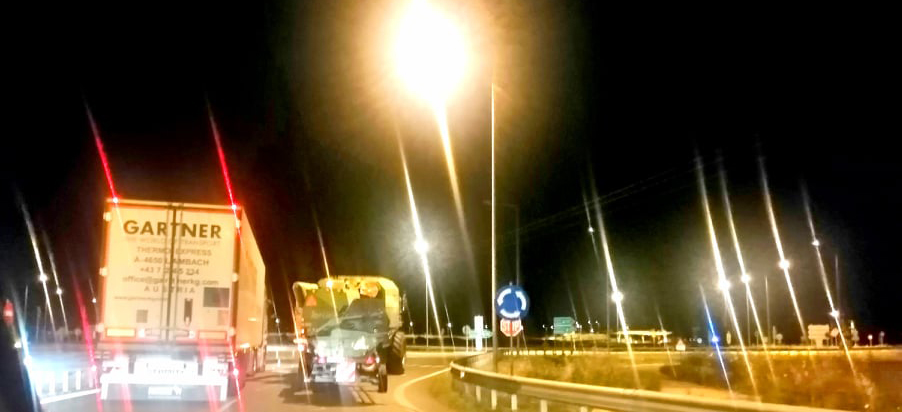 Συγκεκριμένα και όπως κατέγραψε το trikalavoice.gr χάλασε θηριώδης θεριζοαλωνιστική μηχανή (“κομπίνα”) ενώ κινούνταν επί του κόμβου και… ακινητοποιήθηκε!!!… Επικράτησε… μποτιλιάρισμα και οδηγοί Ι.Χ. και φορτηγών “υποχρεώθηκαν” να περάσουν πάνω από κολωνάκια για να φτάσουν στον προορισμό τους.