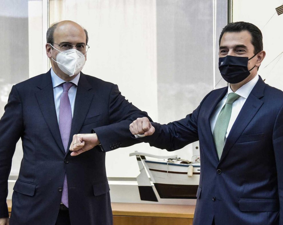 Ολοκληρώθηκε νωρίς το μεσημέρι η τελετή παράδοσης-παραλαβής στο Υπουργείο Ενέργειας και Περιβάλλοντος.