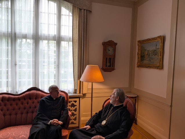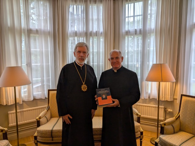 Ακολούθως, ο Μητροπολίτης Κλεόπας ευχαρίστησε τον Αποστολικό Νούντσιο για την ευγενική και συνάμα τιμητική πρόσκλησή του, του διεβίβασε τις εγκάρδιες ευχές της Α. Θ. Παναγιότητος, του Οικουμενικού Πατριάρχου κ.κ. Βαρθολομαίου, και του προσέφερε την εσχάτως εκδοθείσα, από την Αποστολική Διακονία της Εκκλησίας της Ελλάδος, μελέτη του, με τίτλο: «Ἡ ἱεραποστολική διακονία τοῦ Ἀρχιμανδρίτου Εὐσεβίου Βίττη εἰς τήν Σκανδιναυΐαν 1965-1980»,