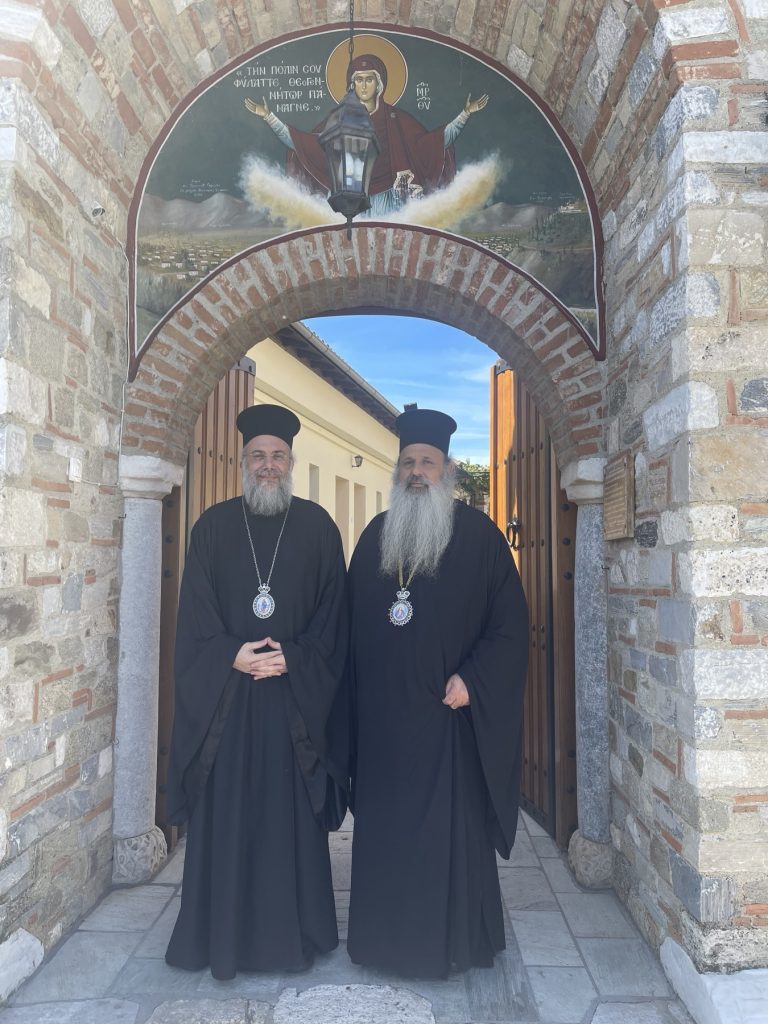 Οι δυο Αρχιερείς έγιναν δεκτοί σε πνεύμα αγάπης από τον κ. Χαρίτωνα και στη συνέχεια οι τρεις και η συνοδεία τους μετέβησαν για προσκύνημα στην Ιερά Μονή Παναγίας Ολυμπιώτισσας.