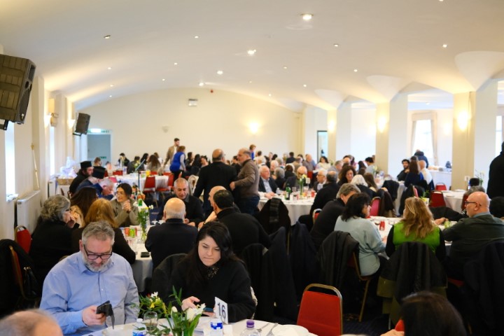 Ακολούθως παρετέθη εόρτιος τράπεζα εις την αίθουσαν της Κοινότητος, όπου ο Θεοφιλέστατος ηυλόγησε την βασιλόπιταν, ενώ οι παρευρισκόμενοι έψαλαν τα παραδοσιακά κάλαντα. Κατά την διάρκειαν του γεύματος, προεβλήθησαν εικόνες εκ της ιεραποστολικής διακονίας του Πατριαρχείου Αλεξανδρείας και Πάσης Αφρικής εις την Σιέρα Λεόνε, προς ενημέρωσιν και πνευματικήν οικοδομήν των πιστών περί του σπουδαίου ιεραποστολικού έργου της Εκκλησίας εις την Αφρικανικήν ήπειρον.
