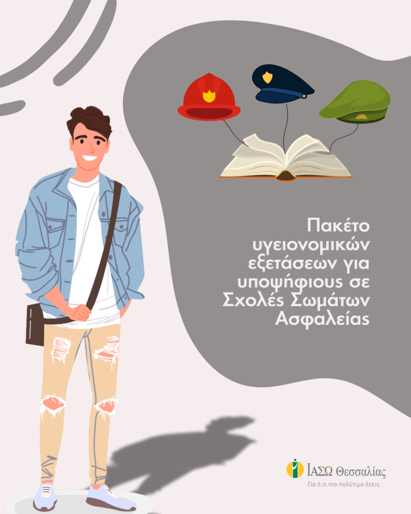 Οι Πανελλήνιες εξετάσεις πλησιάζουν και στο ΙΑΣΩ Θεσσαλίας, αντιλαμβανόμενοι τον περιορισμένο χρόνο και την αγωνία των υποψηφίων, δημιουργήσαμε ειδικό πακέτο όλων των απαραίτητων υγειονομικών εξετάσεων για υποψήφιους σε Στρατιωτικές Σχολές και Σώματα Ασφαλείας.