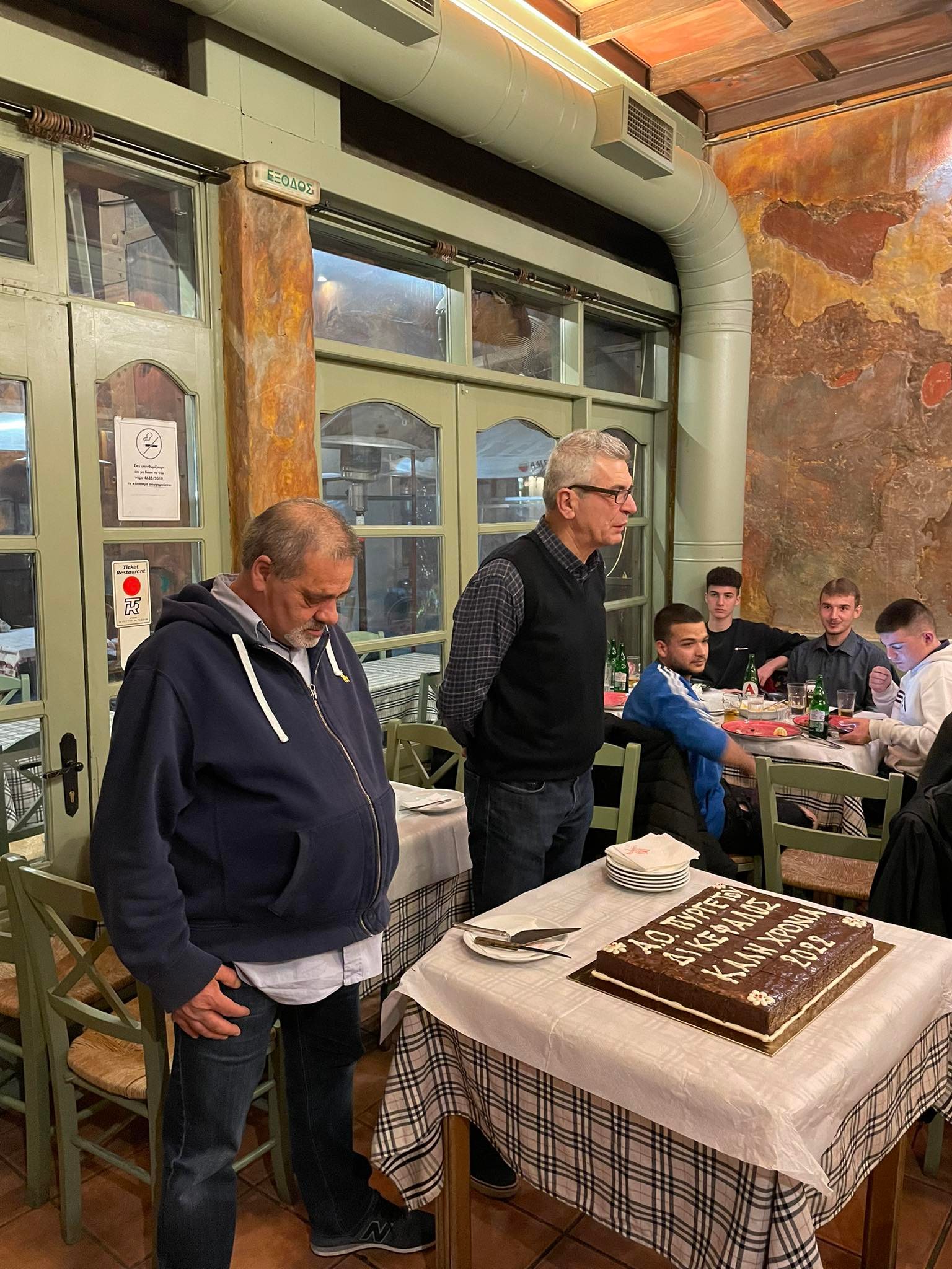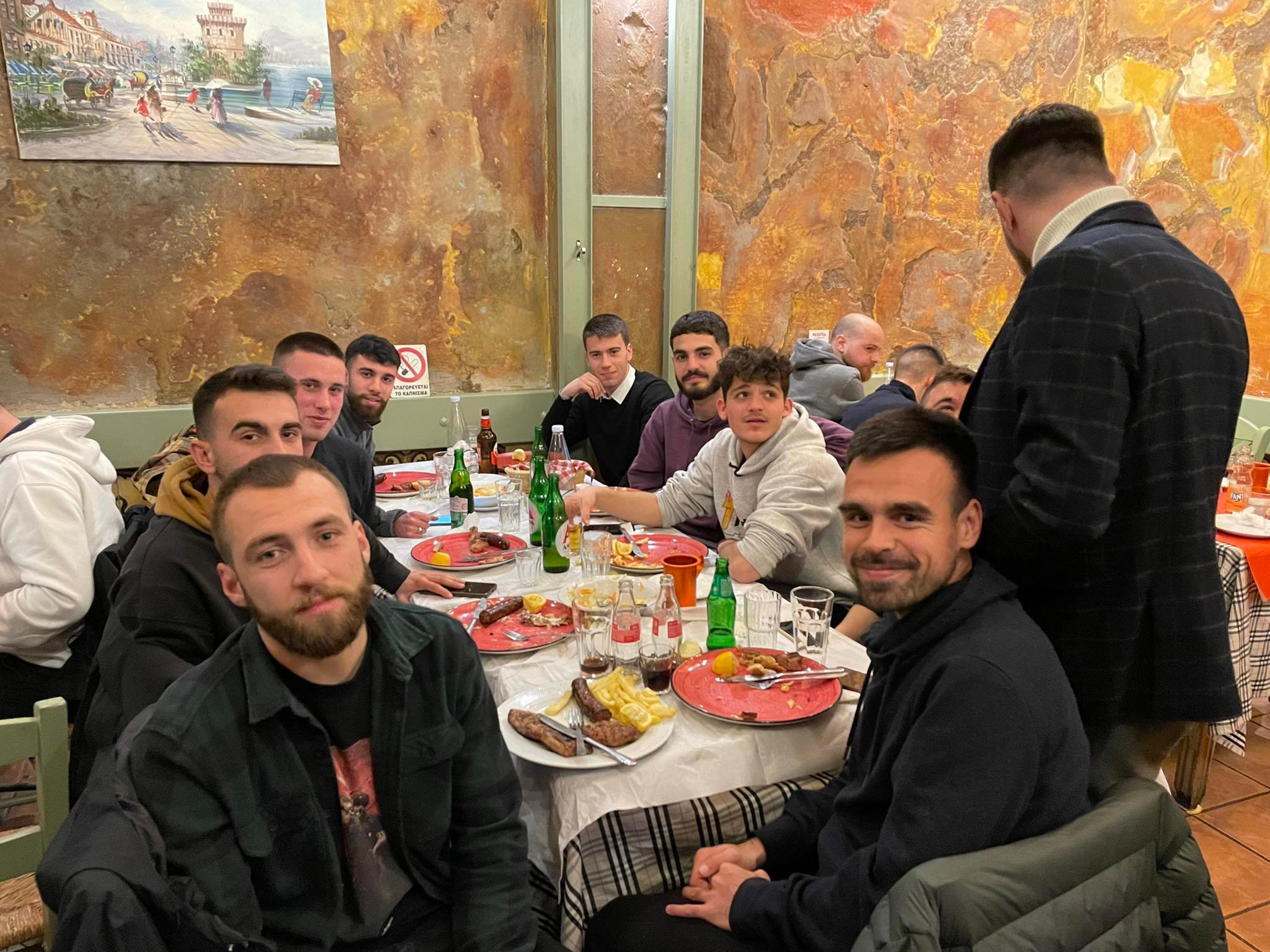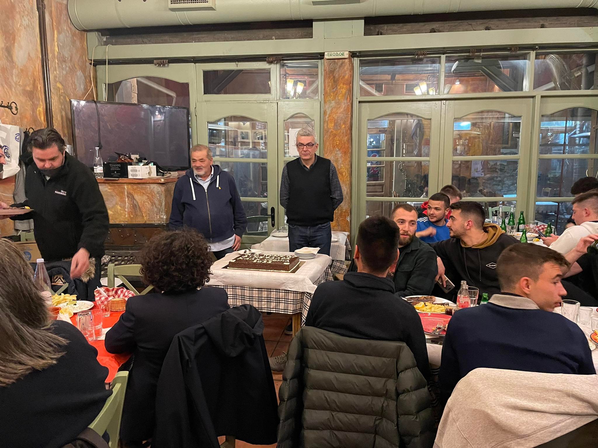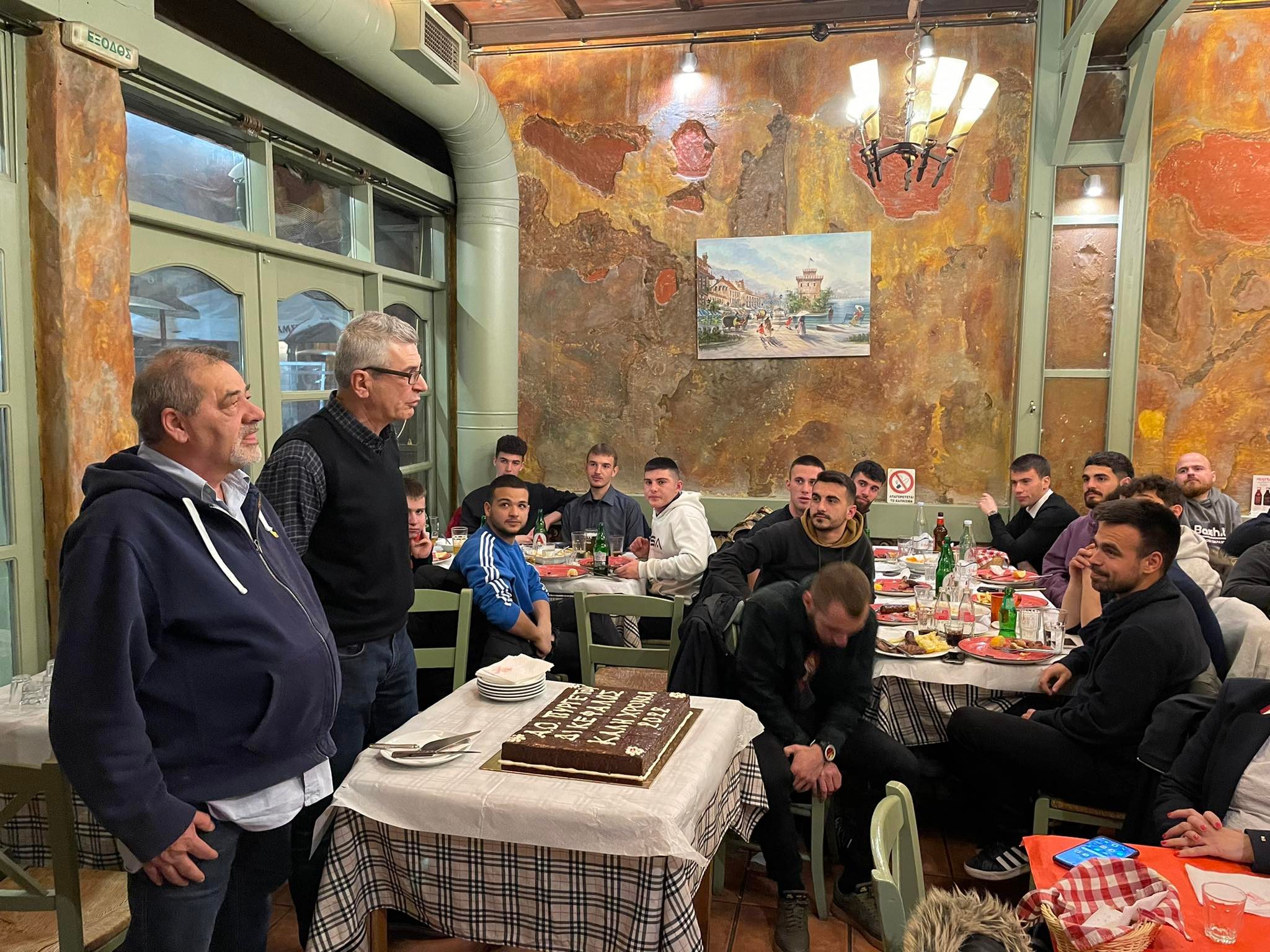 Παίκτες, διοίκηση και τεχνική ηγεσία αντάλλαξαν ευχές για μια καλή χρονιά με επιτυχίες, παρουσία του προέδρου της ΕΠΣΤ Θανάση Μπουτζιώλη και της αντιδημάρχου Αθλητισμού Έφης Λεβέντη.