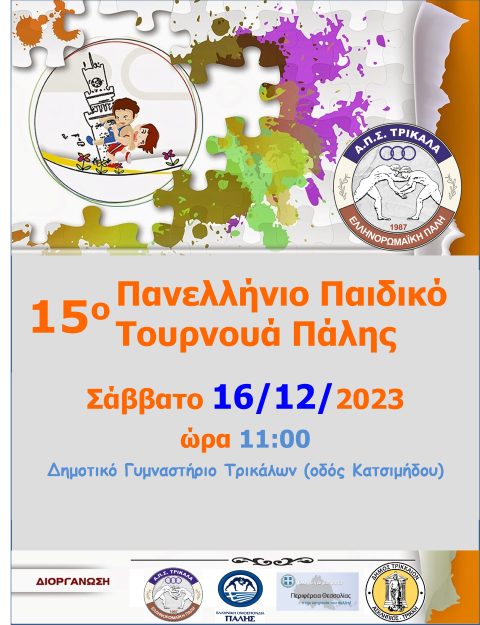 Το Σάββατο 16 Δεκεμβρίου 2023 θα διεξαχθεί στο Δημοτικό γυμναστήριο Τρικάλων το 15ο πανελλήνιο παιδικό τουρνουά πάλης με τη συμμετοχή περισσοτέρων των 400 παιδιών, από όλη την Ελλάδα, ηλικίας 4- 12 ετών.