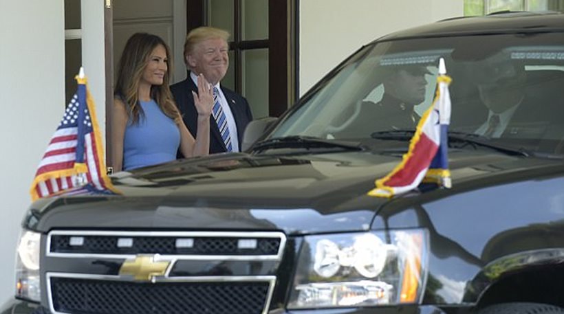 Κάθε της εμφάνιση γίνεται πρώτο θέμα στα διεθνή μέσα που δεν σταματούν να εκθειάζουν τις εντυπωσιακές εμφανίσεις της Μελάνια Τραμπ, η οποία καταφέρνει να επισκιάζει κάθε άλλη Πρώτη Κυρία. Ετσι και χθες η Μελάνια Τραμπ τράβηξε πάνω της όλα τα φλας κατά την υποδοχή στον Λευκό Οίκο του Προέδρου του Παναμά Χουάν Κάρλος Βαρέλα και της συζύγου του Λορένα Καστίγιο. Το baby blue μίντι φόρεμά της που τόνιζε την καλλίγραμμη σιλουέτα της και οι φλοράλ γόβες της από τον Christian Louboutin ήταν αρκετά… Η Μελάνια έλαμψε για ακόμη μια φορά στο πλευρό του Αμερικανού Προέδρου όπως και το μονόπετρό της.