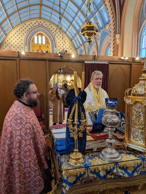 Την κυριώνυμο ημέρα, ο Ποιμενάρχης ιερούργησε στον Καθεδρικό Ναό του Αγίου Γεωργίου Στοκχόλμης, συμπαραστατούμενος από τον Εφημέριο του Ναού, Πανοσιολ. Αρχιμανδρίτη κ. Βαρθολομαίο Ιατρίδη και τον Ιερολ. Διάκονο κ. Γεώργιο Αρβανιτίδη.