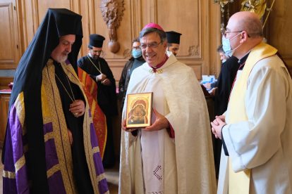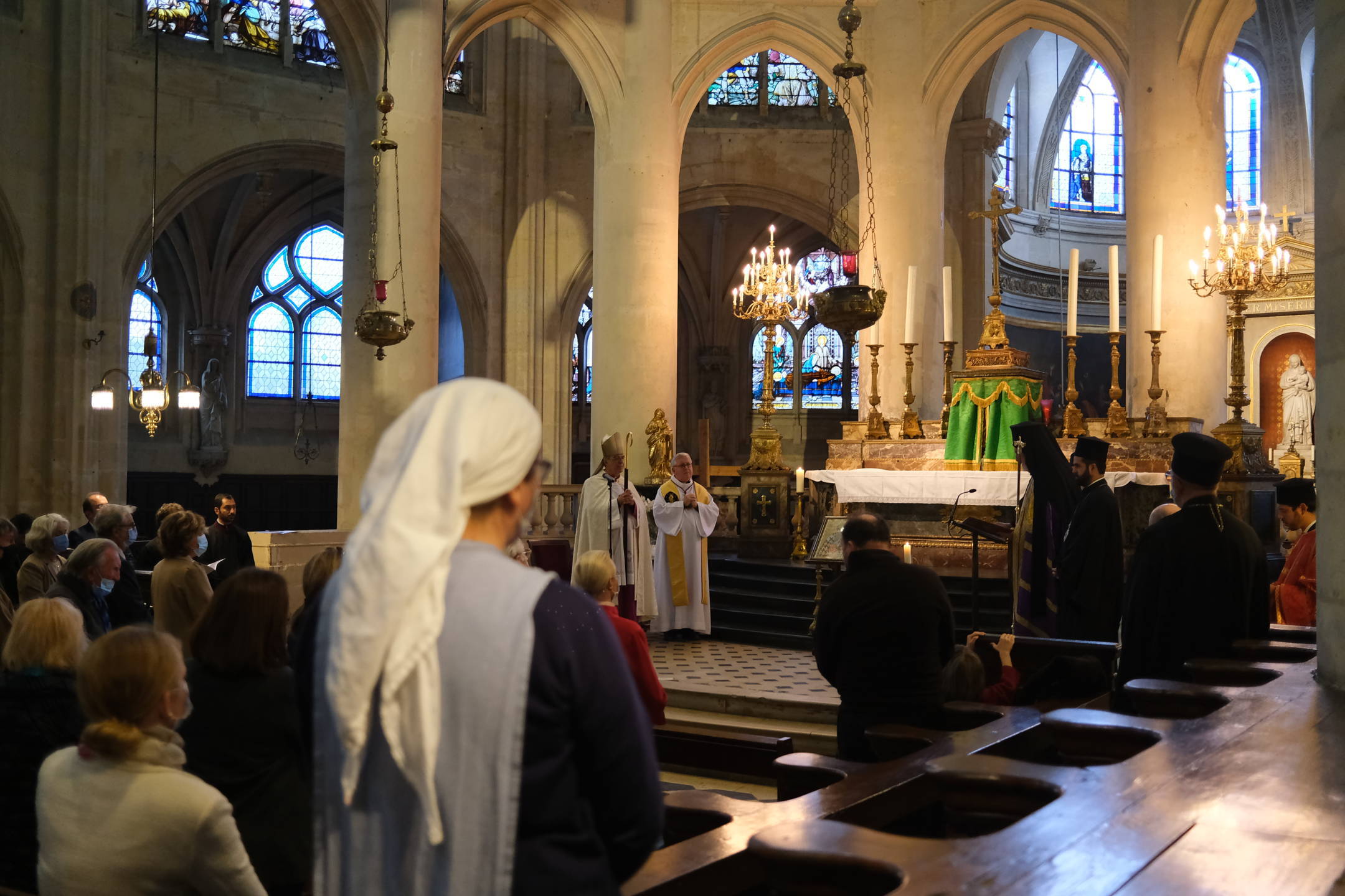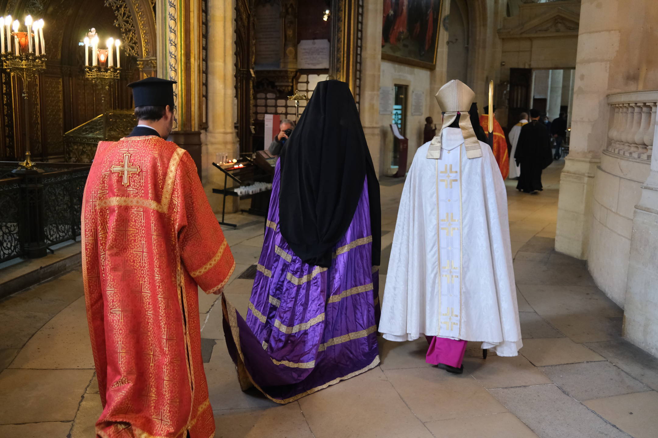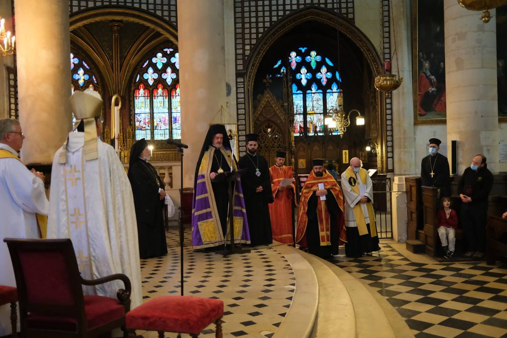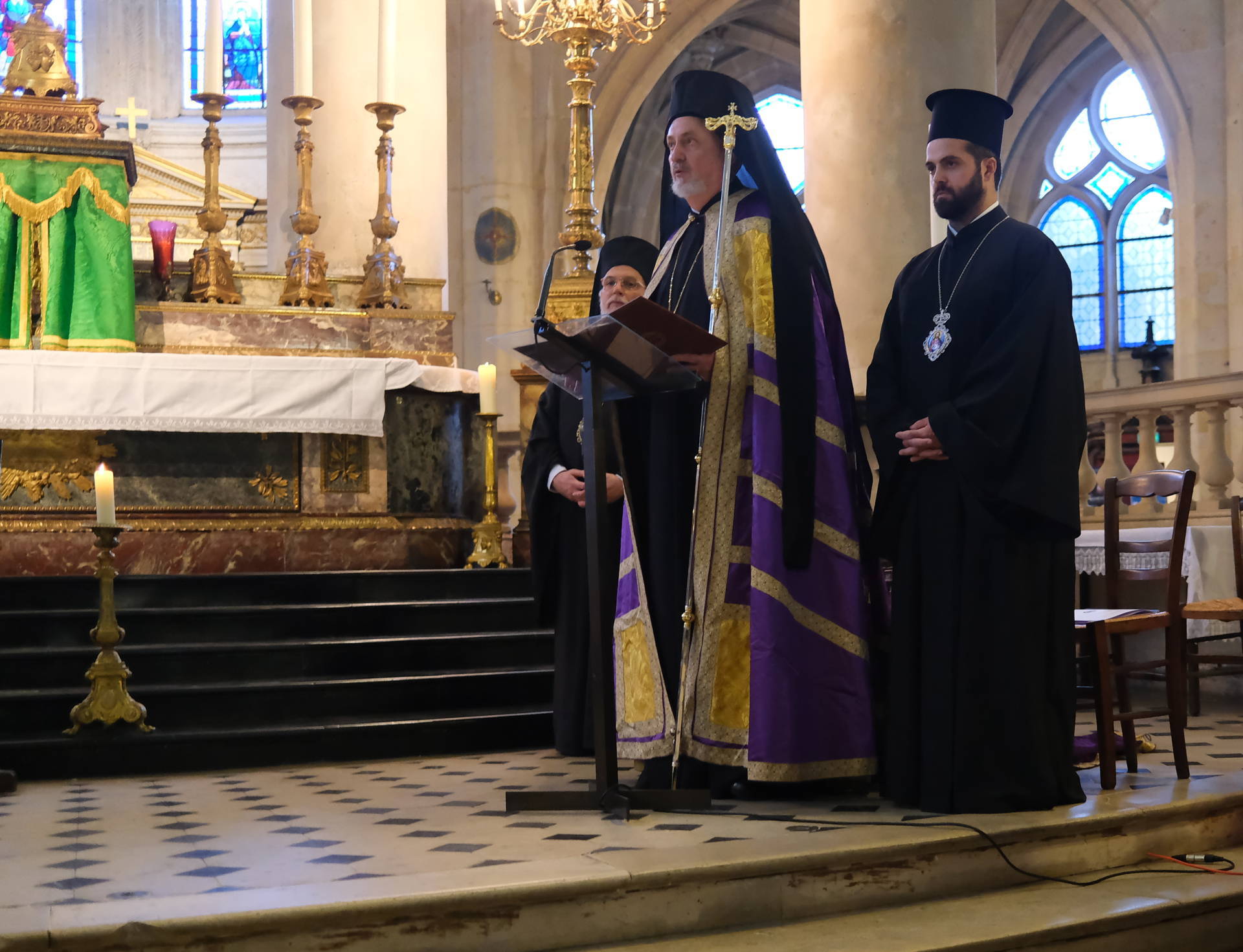 Στον Ι. Ναό Αγίου Στεφάνου λόφου Αγίας Γενοβέφας στο Παρίσι (δίπλα στο Πάνθεον), ετελέσθη σήμερα το απόγευμα ορθόδοξος Εσπερινός υπό του Σεβ. Μητροπολίτου Γαλλίας κ. Εμμανουήλ, τη συμμετοχή των Βοηθών αυτού Θεοφ. Επισκόπων Ρηγίου κ. Ειρηναίου και Μελιτηνής κ. Μαξίμου, τη παρουσία του Ρωμαιοκαθολικού Αρχιεπισκόπου Παρισίων κ. Μισέλ Aupetit, των Διπλωματικών Αρχών της Ελλάδος και της Κύπρου στο Παρίσι, Οφφικιάλων της Μεγάλης του Χριστού Εκκλησίας και πιστών.