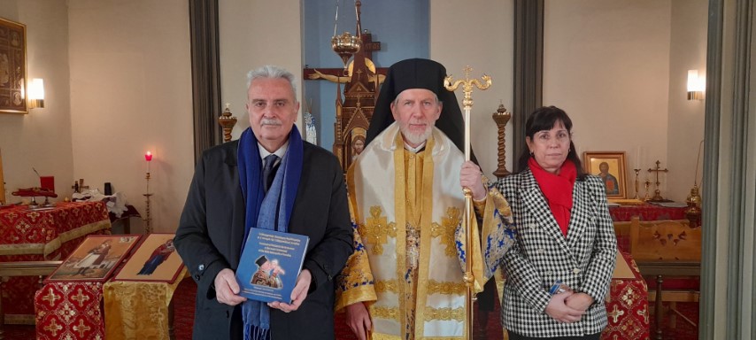 Στο τέλος της ευχαριστιακής σύναξης, ο Ποιμενάρχης καλοσώρισε το νέο Πρέσβυ της Ελλάδος στη Δανία, Εξοχ. κ. Φραγκίσκο Κωστελλένιο, και την Ερίτιμο σύζυγό του Παναγιώτα, οι οποίοι συμμετείχαν προσευχητικώς στη Θεία Λειτουργία, διαβιβάζοντας τις πατρικές ευχές της Α. Θ. Παναγιότητος, του Οικουμενικού Πατριάρχου κ. Βαρθολομαίου.