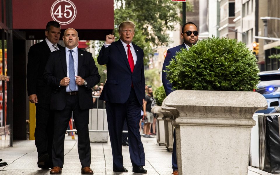 Γύρω στις 9 π.μ. χθες, ο Αμερικανός πολιτικός και μεγιστάνας προσήλθε στο γραφείο της γενικής εισαγγελέως Νέας Υόρκης, Λετίσια Τζέιμς, η οποία εδώ και μήνες ερευνά καταγγελίες για τις επιχειρηματικές πρακτικές του ομίλου Τραμπ. Στη μικρή απόσταση που διήνυσε η αυτοκινητοπομπή του από τον Πύργο Τραμπ, στο κέντρο του Μανχάταν, μέχρι το εισαγγελικό γραφείο, ο τέως πρόεδρος γνώρισε επευφημίες από οπαδούς του, οι οποίοι κατήγγειλαν ως πολιτικό διωγμό του εκλεκτού τους την έφοδο του FBI.