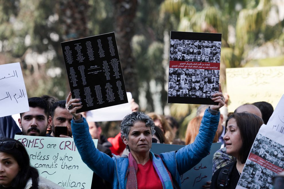 Νωρίτερα σήμερα Δευτέρα, μη κυβερνητική οργάνωση έκανε λόγο για τουλάχιστον 973 πολίτες νεκρούς στο δυτικό τμήμα της χώρας, εκεί όπου συνεχίζονται τα πιο αιματηρά και βίαια επεισόδια που έχουν ξεσπάσει στη Συρία μετά την πτώση του Μπασάρ αλ Ασαντ.