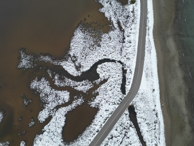 Παράλληλα όμως προσφέρει και πανέμορφες εικόνες όπως αυτές που κατέγραψε το drone μας απο τις περιοχές του Μαρτίνου και της Αταλάντης καθώς τα χιόνια έχουν φτάσει μέχρι την θάλασσα και τα Flamingos που ζουν στις πληγείσες περιοχές από τα ακραία καιρικά φαινόμενα. Απολαύστε τις μοναδικές εικόνες. Το υλικό τραβήχτηκε την Τρίτη 07/02/2023.