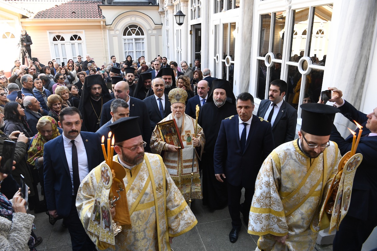 Ακολούθησε η λιτανευτική πομπή των Ιερών Εικόνων κατά την οποία ο Οικουμενικός Πατριάρχης ευλόγησε τον πιστό λαό από τον εξώστη του Πατριαρχικού Οίκου.