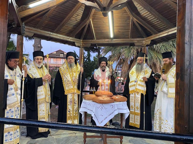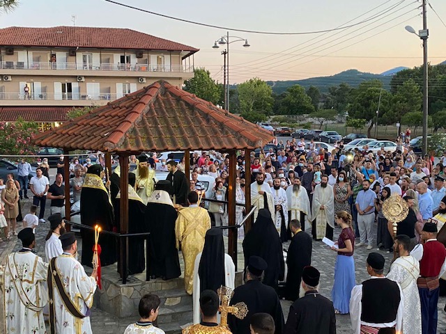 Συγκεκριμένα, το Σάββατο 16 Ιουλίου τελέστηκε ο Πανηγυρικός Αρχιερατικός Εσπερινός, η Λιτανεία και η Αρτοκλασία, προεξάρχοντος του Σεβασμιωτάτου Μητροπολίτου Λαρίσης και Τυρνάβου κ. Ιερωνύμου, με τη συμμετοχή των παραπάνω Αρχιερέων.