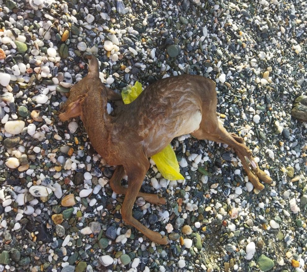 Συγκεκριμένα, η θάλασσα ξέβρασε ένα μικρό ελάφι, που ίσως βγήκε για μπάνιο και πνίγηκε.