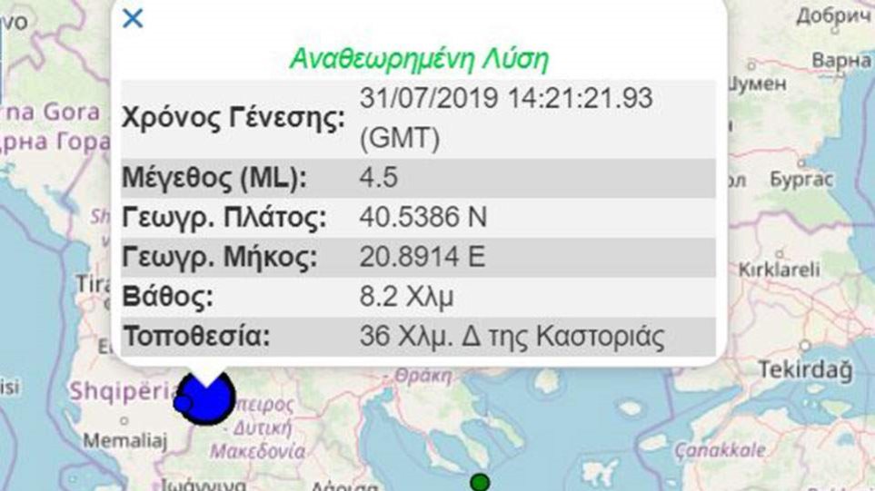 Σεισμική δόνηση σημειώθηκε και την Καστοριά, το απόγευμα της Τετάρτης.