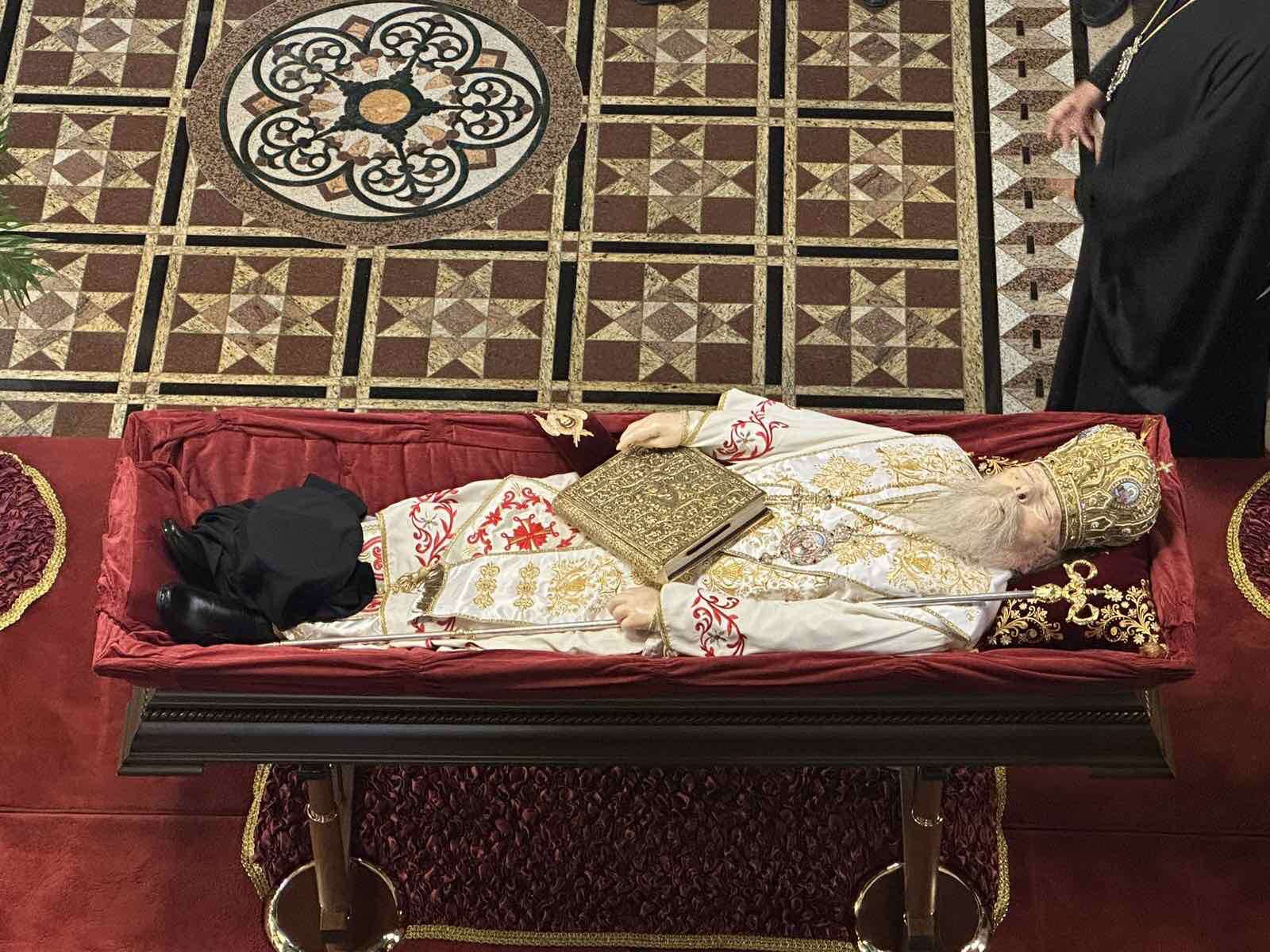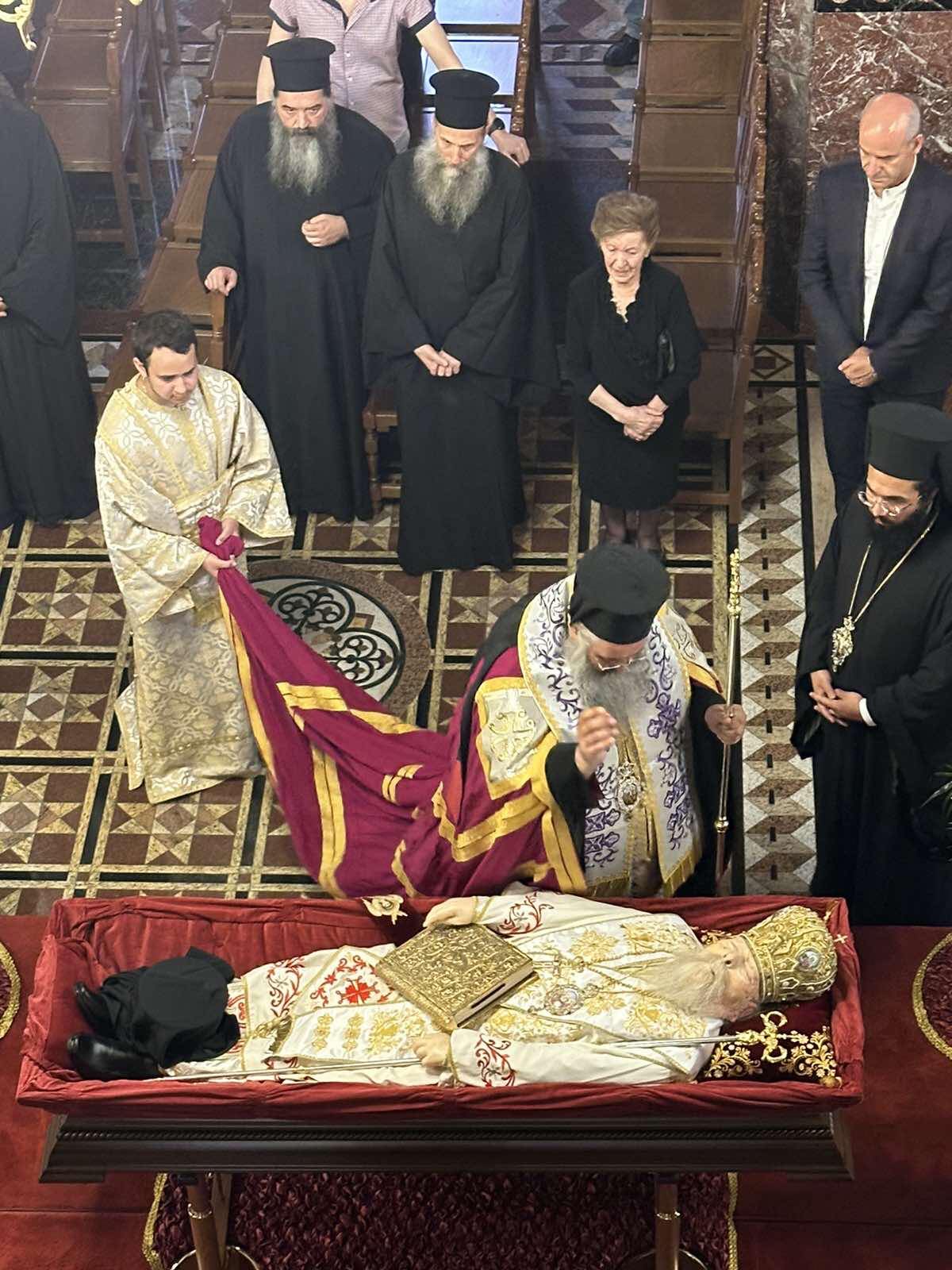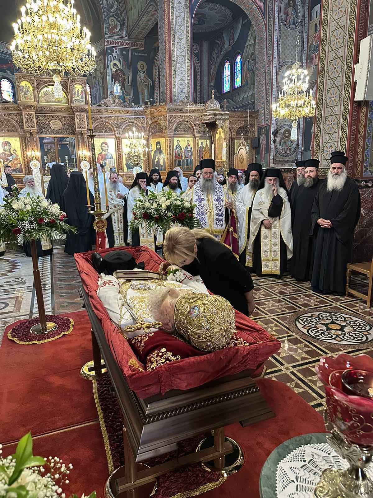 Το σκήνωμα θα παραμείνει στον Ιερό Καθεδρικό Ναό Θείας Αναλήψεως μέχρι την Τετάρτη μεσημέρι. Μετά την τέλεση της Αναστάσιμης Νεκρώσιμης Ακολουθίας, θα μεταφερθεί στο Κοιμητήριο Αγίου Λαζάρου Κατερίνης, προκειμένου να ενταφιασθεί, σε εφαρμογή εκπεφρασμένης επιθυμίας του μακαριστού Αρχιερέα.