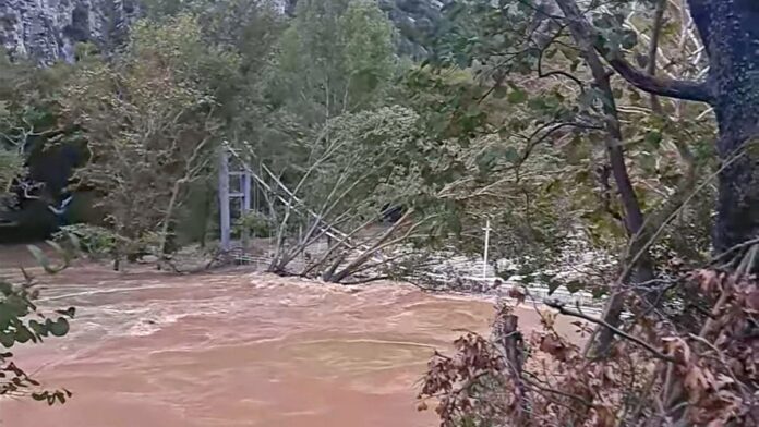 Ήταν αρχές Σεπτεμβρίου όταν ο Πηνειός έδειξε το -πιο εφιαλτικό- πρόσωπό του στην ιστορία, υψώνοντας τη στάθμη του νερού στα 18, ίσως και παραπάνω, μέτρα. «Κατάπιε» την ιστορική, κρεμαστή γέφυρα των Τεμπών και με τους κραδασμούς από την ορμητική πίεσή του, κατέστρεψε ένα τμήμα της και την ανάγκασε να αιωρείται κυριολεκτικά στον αέρα. Ο χείμαρρος του Πηνειού εισέβαλε με απίστευτη μανία και στον Ιερό Ναό της Αγίας Παρασκευής, ο οποίος περισσότερα από 100 χρόνια στεκόταν αγέρωχος μέσα σε βράχο, στο κέντρο των στενών της κοιλάδας των Τεμπών. Με το ημερολόγιο ωστόσο να δείχνει 2 Νοεμβρίου, η εικόνα μοιάζει αμετάβλητη: Η κρεμαστή γέφυρα παραμένει στην ίδια κατάσταση, αιωρούμενη στον αέρα από τη μία πλευρά. Και, επειδή προσβασιμότητα δεν υπάρχει, οι άνθρωποι της Εκκλησίας αναγκάστηκαν να περπατήσουν μια απόσταση των 2,5 χιλιομέτρων με τα πόδια, ώστε να προσεγγίζουν τον Ιερό Ναό ωστε να προστατέψουν εικόνες και ιερά σκεύη, για παν ενδεχόμενο.