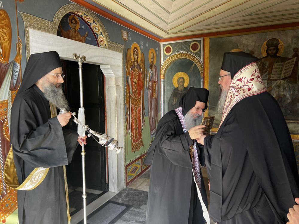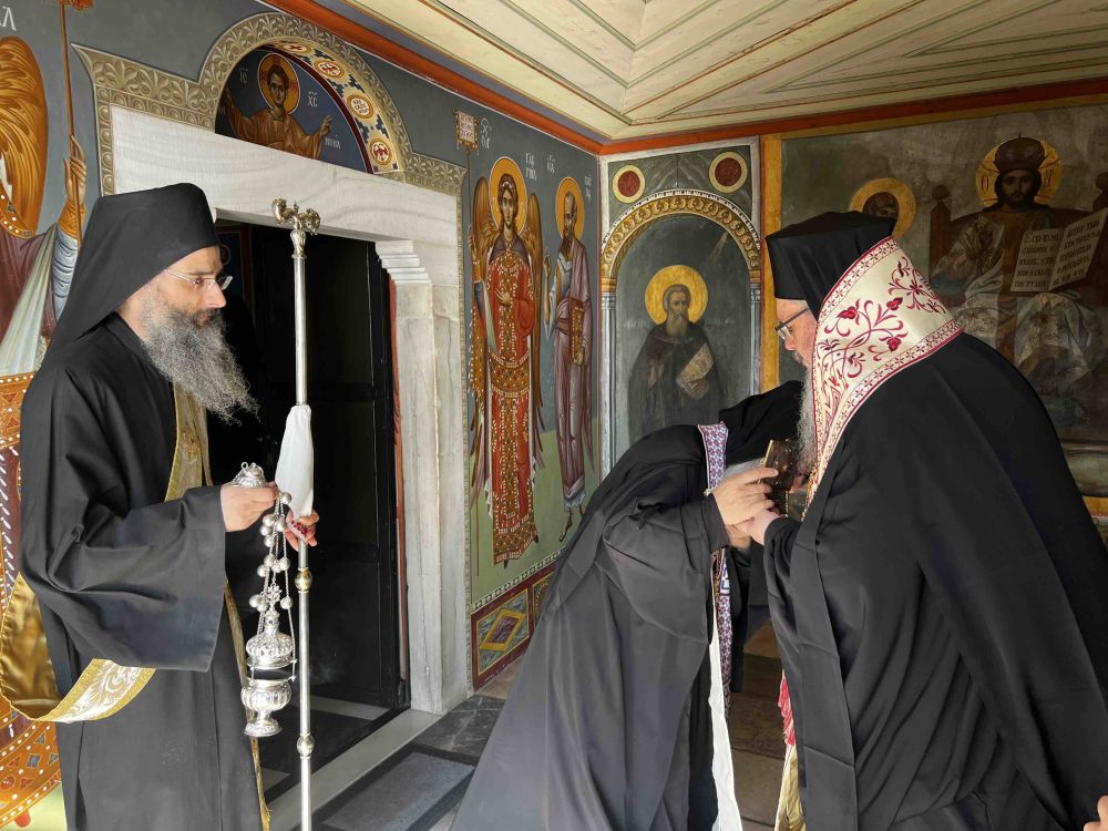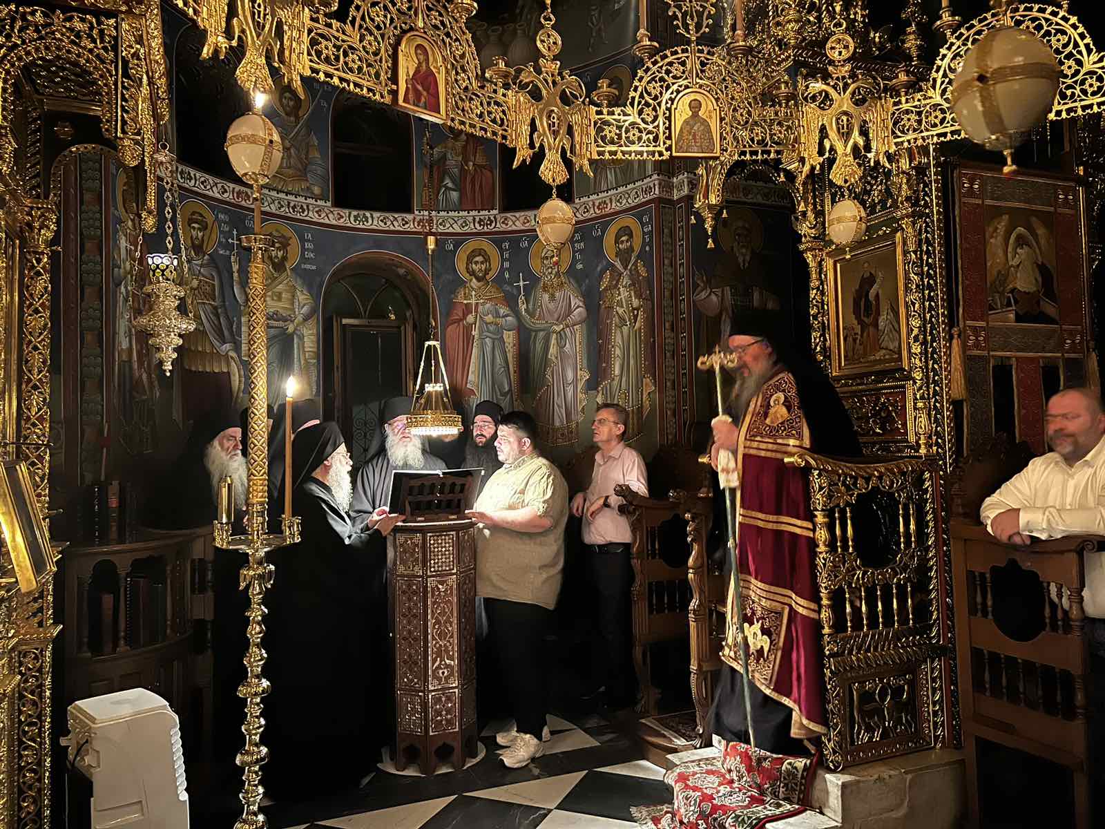Προσκεκλημένος τῆς ἀγαπώσης καρδίας τῶν Πατέρων καί Ἀδελφῶν τῆς Ἱερᾶς Μονῆς Σίμωνος Πέτρας Ἁγίου Ὄρους καί τοῦ Πανοσιολογιωτάτου Καθηγουμένου Αὐτῆς Ἀρχιμανδρίτου κ. Ἐλισσαίου, ὁ Σεβ. Μητροπολίτης Λαρίσης καί Τυρνάβου κ. Ἱερώνυμος τῇ κανονικῇ ἀδείᾳ καί εὐλογίᾳ τῆς Α.Θ.Π. τοῦ Οἰκουμενικοῦ Πατριάρχου κ. Βαρθολομαίου καί τῆς Ἱερᾶς Συνόδου τῆς Ἐκκλησίας τῆς Ἑλλάδος, καί συνοδευόμενος ἀπό τόν Ἐλλογιμώτατο κ. Σωτήριο Μπαλατσούκα, Ἄρχοντα Πρωτονοτάριο τοῦ Οἰκουμενικοῦ Θρόνου, Καθηγητῆ τοῦ Πανεπιστημίου Θεσσαλίας καί Διευθυντή τοῦ Ἰδιαιτέρου Γραφείου τοῦ Σεβασμιωτάτου, τόν Ἐντιμότατο κ. Νικόλαο Τσιρέλη, Νομικό Σύμβουλο τῆς Ἱερᾶς Μητροπόλεως καί τόν Ἀξιότιμο κ. Ταξίαρχο Τσαμπούρη, Ὁδηγό, μετέβη ἀπό 26 ἕως 28 Αὐγούστου 2024 στό Ἁγιώνυμο Ὄρος, προκειμένου νά τελέσει τήν Ἀγρυπνία ἐπί τῇ Ἑορτῇ τῆς Κοιμήσεως τῆς Ὑπεραγίας Θεοτόκου στήν Ἱ.Μ. Σίμωνος Πέτρας, καί νά συμπανηγυρίσει μέ τούς ἐκεῖ ἐνασκουμένους Πατέρες καί Ἀδελφούς τό Πάσχα τοῦ καλοκαιριοῦ, κατά τό Ἁγιορείτικο Ἑορτολόγιο.
