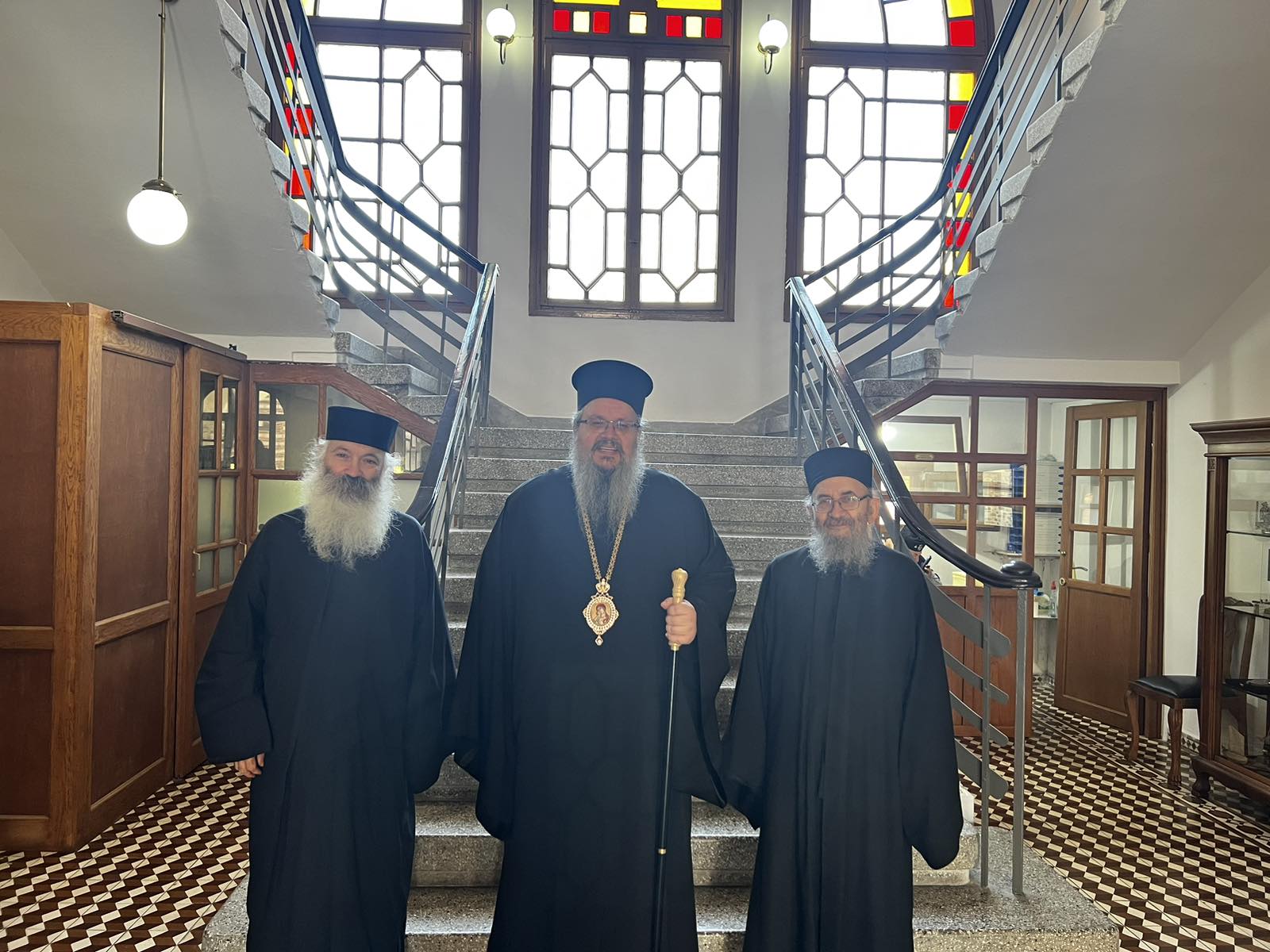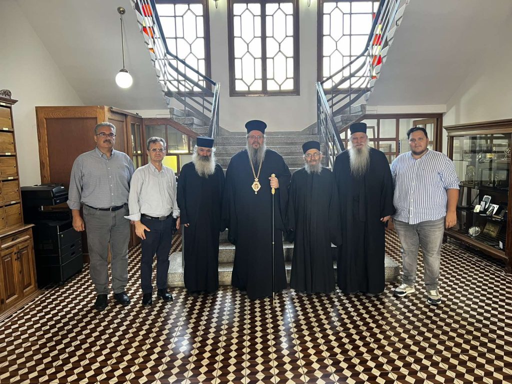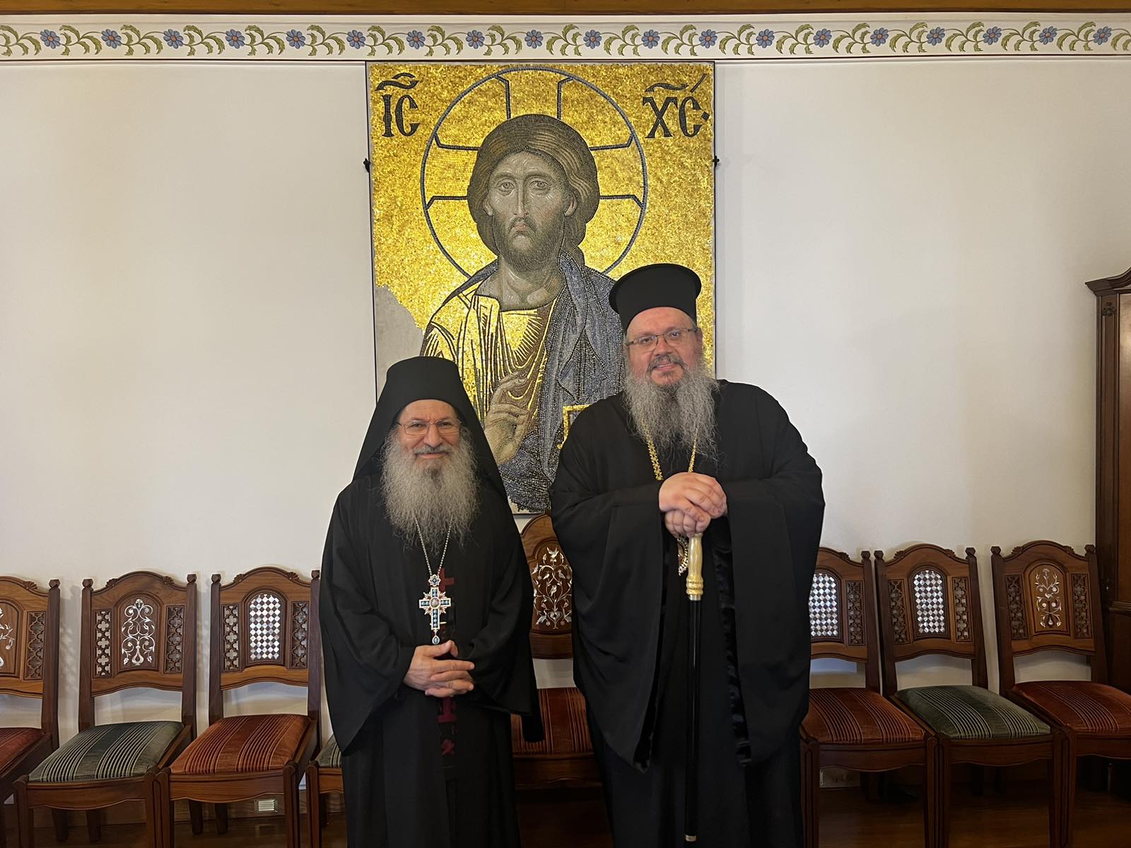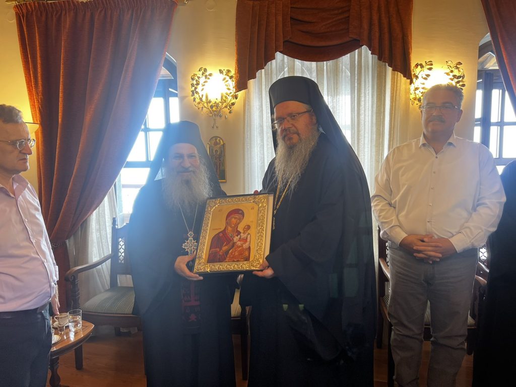 Στόν Σεβασμιώτατο δόθηκε ἡ δυνατότητα νά μεταβεῖ στίς Καρυές, τήν ἀρχαία καθέδρα τοῦ Πρώτου τοῦ Ἁγίου Ὄρους, ὅπου συναντήθηκε μέ τήν Ἱερά Ἐπιστασία καί τόν Πρωτεπιστάτη Γέροντα Συμεών Διονυσιάτη, οἱ ὁποῖοι γιά τό τρέχον ἔτος ἔχουν τήν εὐθύνη τῆς διοικήσεως τοῦ Ἱεροῦ Τόπου κατά τά Ἁγιορείτικα θέσμια. Στό ἱστορικό κτίριο τῆς Ἱερᾶς Κοινότητας, ὁ Σεβασμιώτατος ἔγινε δεκτός προφρόνως, κατέθεσε τόν σεβασμό του στή σημασία καί τήν προσφορά τοῦ Ἁγιορείτικου Μοναχισμοῦ στήν Ἐκκλησία καί τήν πατρίδα, ἐνῶ καί ἀντάλλαξε άπόψεις ἐπί τρεχούσης φύσεως ζητημάτων. Μέ εὐλογία τῆς Ἱερᾶς Ἐπιστασίας, στόν Σεβασμιώτατο δόθηκε ἡ εὐκαιρία νά προσκυνήσει τήν Ἱερά καί Θαυματουργή Εἰκόνα τῆς Παναγίας μας «Ἄξιόν Ἐστι», ἡ ὁποία φυλάσσεται στόν Ἱερό Ναό τοῦ Πρωτάτου Καρυῶν.