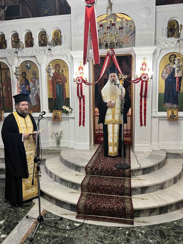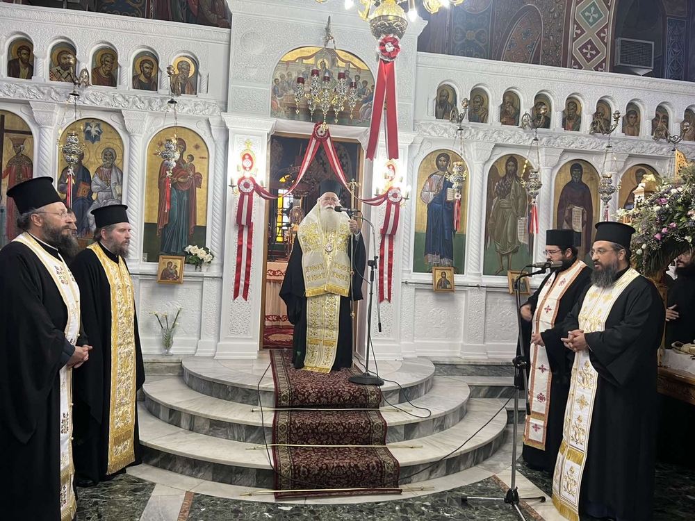 Προέστη ο Σεβ. Μητροπολίτης Λαοδικείας κ. Θεόδωρος, εκπρόσωπος της Α.Θ.Π. του Οικουμενικού μας Πατριάρχου κ.κ. Βαρθολομαίου, και συμμετείχαν οι Σεβασμιώτατοι Μητροπολίτες Πειραιώς κ. Σεραφείμ, Σύρου κ. Δωρόθεος, Μεσογαίας κ. Νικόλαος, Πατρών κ. Χρυσόστομος, Γλυφάδας κ. Αντώνιος, Θαυμακού κ. Ιάκωβος, Θεσσαλιώτιδος κ. Τιμόθεος, Τρίκκης κ. Χρυσόστομος, Γρεβενών κ. Δαβίδ, Σταγών κ. Θεόκλητος, Καρπενησίου κ. Γεώργιος, Μάνης κ. Χρυσόστομος, Αιτωλίας κ. Δαμασκηνός, Παραμυθίας κ. Σεραπίων, και ο Θεοφιλέστατος Επίσκοπος Αχελώου κ. Νήφων. Συμπροσευχόμενος παρέστη στο Ιερό Βήμα ο Σεβ. Μητροπολίτης Κρήνης κ. Κύριλλος.