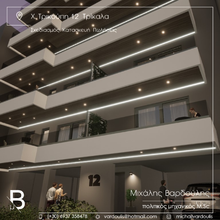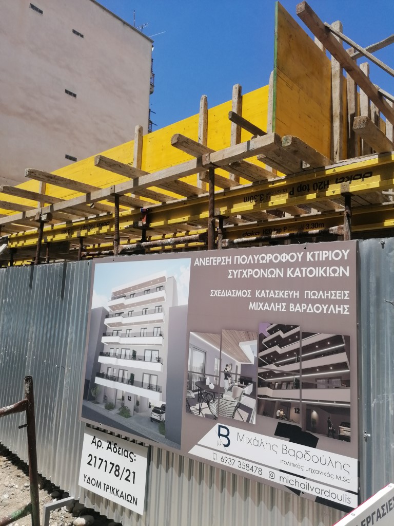 Με γοργούς ρυθμούς προχωρά η ανέγερση πολυώροφου κτιρίου σύγχρονων κατοικιών επί της οδού Χ. Τρικούπη 12 στο κέντρο της πόλης των Τρικάλων με ολοκλήρωση της εκσκαφής και της κατασκευής του υπογείου σε λιγότερο από ένα μήνα (Απρίλιος 2021) και χρόνο παράδοσης τους 18 μήνες.