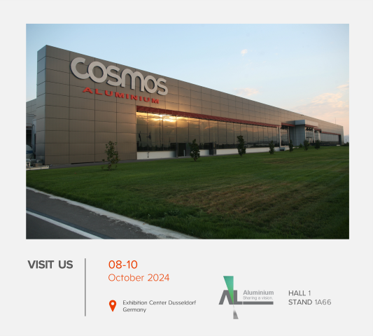 H Cosmos Aluminium, ηγέτιδα στον τοµέα της διέλασης αλουμινίου, ανακοινώνει τη συμμετοχή της στην έκθεση Aluminium 2024, που θα πραγµατοποιηθεί από τις 8 έως τις 10 Οκτωβρίου 2024 στο Düsseldorf, Γερμανία.