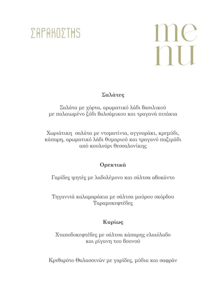Δείτε το απολαυστικό μενού και κάντε έγκαιρα της κρατήσεις σας για τις μέρες και τις ώρες που επιθυμείτε, ειδικά δε για το βράδυ της Μεγάλης Παρασκευής, μετά τη συνάντηση των Επιταφίων.