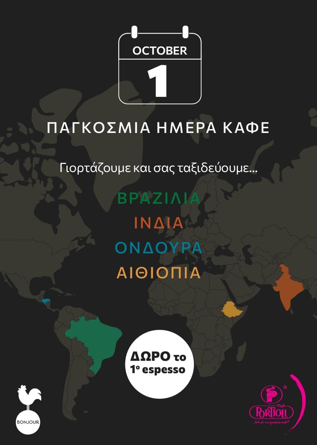 Αυτό το Σάββατο 1η Οκτωβρίου γιορτάζουν και τιμούν την παγκόσμια ημέρα του καφέ. Μας κερνάνε τον πρώτο espresso της ημέρας με μονοποικιλιακά χαρμάνια από Ονδούρα, Βραζιλία, Ινδία και Αιθιοπία. Αυτό το Σάββατο σε όλα τα καταστήματα Bonjour σε Τρίκαλα, Καλαμπάκα και Καρδίτσα!…