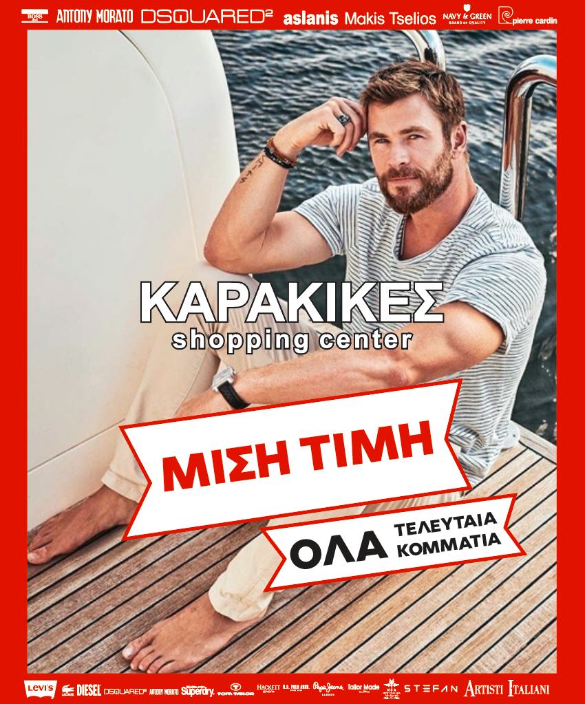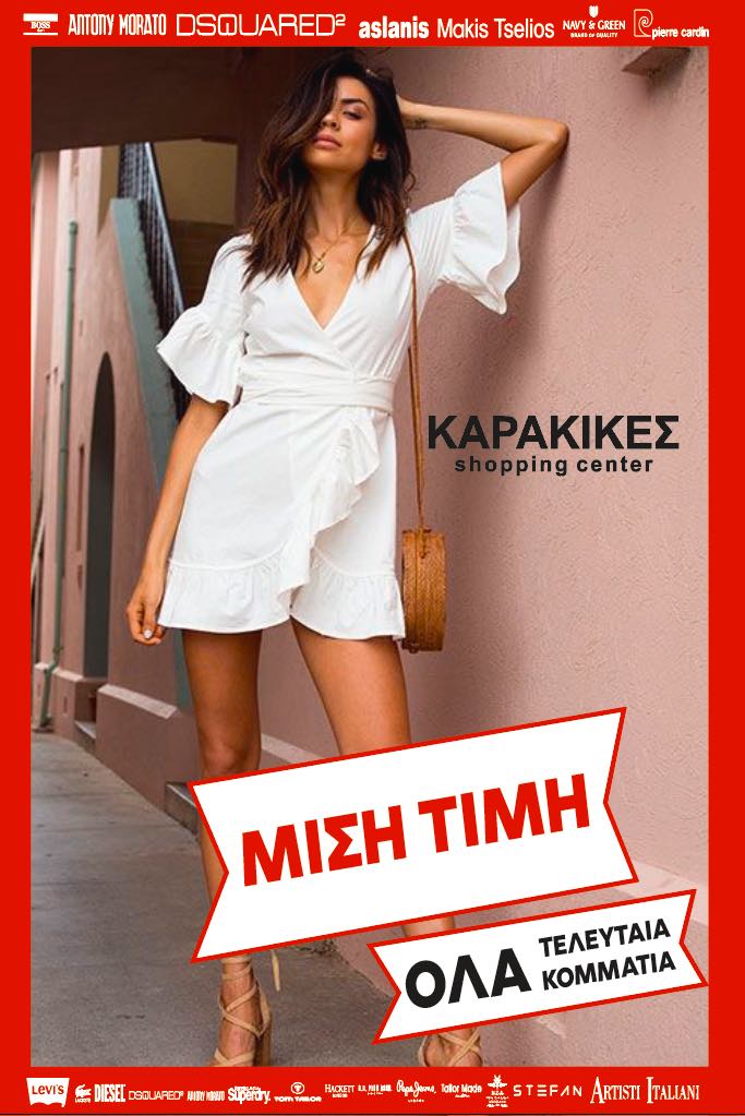 Το κορυφαίο εμπορικό κέντρο ένδυσης και υπόδησης για όλη την οικογένεια, το ΚΑΡΑΚΙΚΕΣ Shopping Center, ανταποδίδει τη σταθερή προτίμηση στους πελάτες του και προχωράει σε νέες… γενναίες εκπτώσεις. Βρείτε από σήμερα τελευταία κομμάτια σε επώνυμα ρούχα και υποδήματα στη μισή τιμή (-50%)!!!…