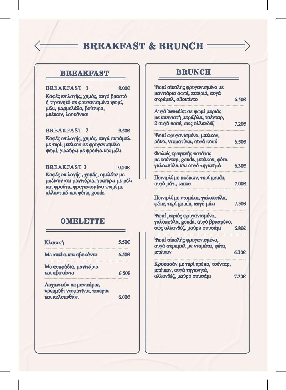 Εκεί δοκιμάσαμε τα πιο νόστιμα burgers της πόλης, εκεί ξεκινήσαμε τη μέρα μας με ομελέτες και τηγανιτά αυγά που παραπέμπουν στο “πρωινό της μαμάς”, εκεί συνεχίσαμε για brunch και πήραμε εκπληκτικές μπαγκέτες στο χέρι, εκεί δροσιστήκαμε τα μεσημέρια με τις ολόφρεσκες σαλάτες τους, εκεί αργά το απόγευμα καταλήξαμε για μακαρονάδα με κιμά (… όπως πρέπει να είναι!!!) και μπόλικο τριμμένο τυρί από πάνω. Δείτε τον κατάλογο, δείτε και τις φωτογραφίες και θα καταλάβετε τι εννοούμε: