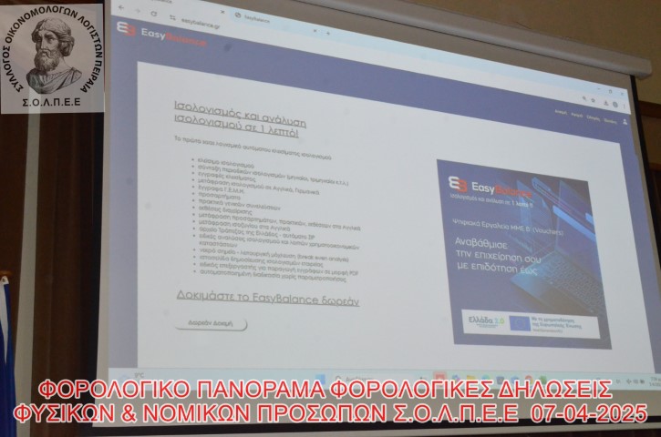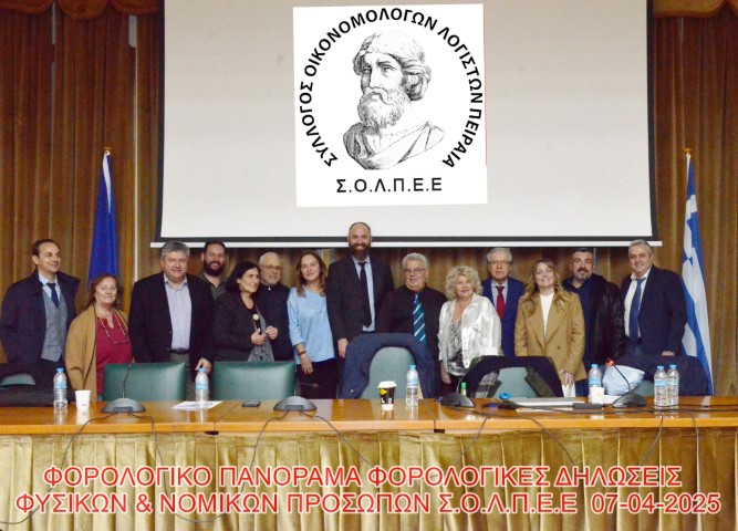 Ο γνωστός τρικαλινός φοροτεχνικός Αλέξανδρος Μυλωνάς συμμετείχε ως ομιλητής σε «Επίκαιρη Φορολογική Ημερίδα» του Συλλόγου Οικονομολόγων Λογιστών Πειραιά (Σ.Ο.Λ.Π.Ε.Ε.), που πραγματοποιήθηκε την Δευτέρα, 7 Απριλίου 2025, στην αίθουσα του Εμπορικού και Βιομηχανικού Επιμελητηρίου Πειραιώς.