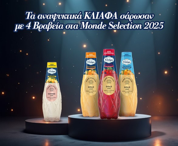Τέσσερα διεθνή βραβεία – αντανάκλαση της καινοτομίας και της απαράμιλλης γεύσης τους, απέσπασαν τα αναψυκτικά ΚΛΙΑΦΑ από τον παγκοσμίως καταξιωμένο οργανισμό Monde Selection (International Quality Institute), ο οποίος διαθέτει 80 αναγνωρισμένους εμπειρογνώμονες υψηλού κύρους και εργαστήρια αναλύσεων μοναδικής ακρίβειας.