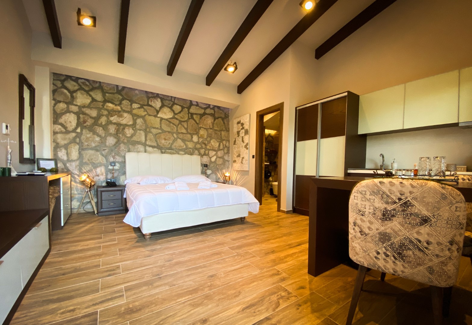 Διαθέτει έξι (6) αυτόνομα καταλύματα βασισμένα σε σχέδια παραδοσιακής αρχιτεκτονικής, με σχολαστική επιλογή υλικών και διακοσμημένα με ιδιαίτερο μεράκι, προδιαθέτοντας τον επισκέπτη να νιώσει… σαν στο σπίτι του. Μέσα σε ένα καταπράσινο περιβάλλον, με restaurant για πρωινό, φαγητό, καφέ και ποτό.