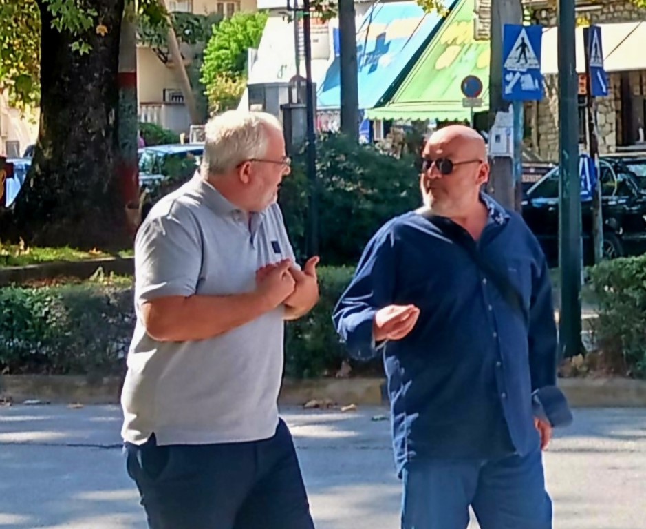 Κώστας Κρεμμύδας, πάλαι ποτέ υποψήφιος δήμαρχος Τρικκαίων, και Αντώνης Μεταξιώτης, ιατρός των οφθαλμών ημών, διακρίνονται σε μια από τις ατέρμονες συζητήσεις τους για το μέλλον του κόμματος. Εννοείται ψήφισαν στις εκλογές της Κυριακής και θα… ξαναπάνε  κάλπη την ερχόμενη Κυριακή.