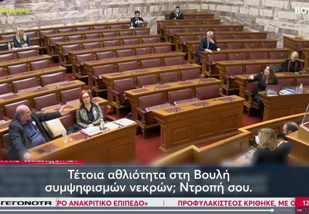 ΝΙΚΟΛΑΟΣ ΦΙΛΗΣ: Τέτοια αθλιότητα στην Βουλή, συμψηφισμός νέκρων, ντροπή σας! Ντροπή σας! Τέτοια αθλιότητα εδώ μέσα. Ντροπή σου! Ντροπή σου!