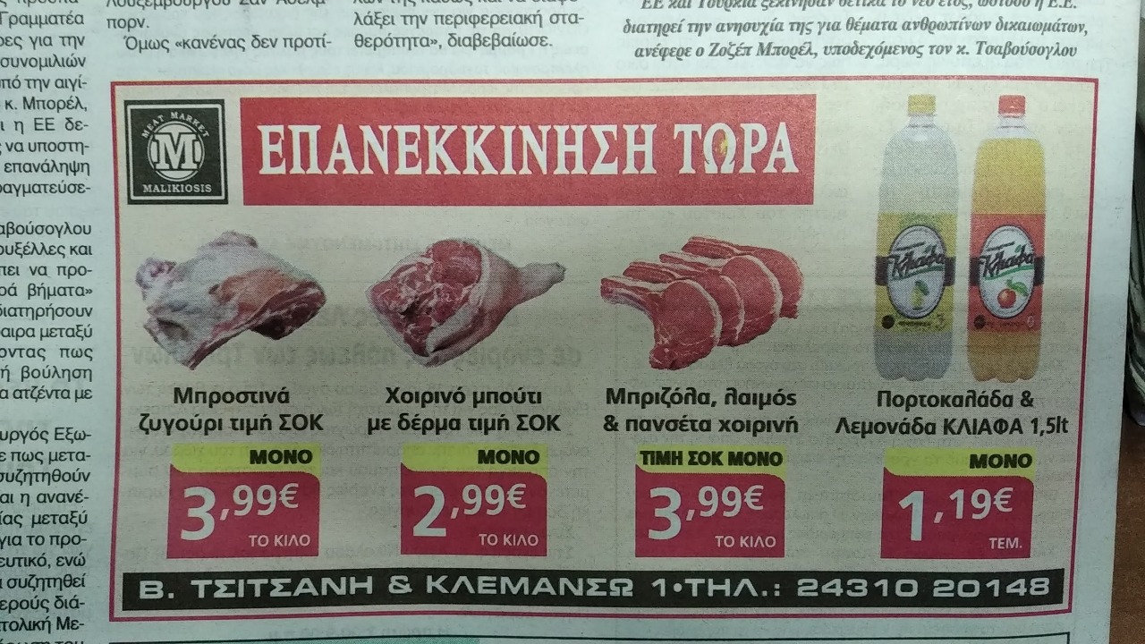 Αμ δε… Τον πρόλαβε άλλος!!!… Το κρεοπωλείο Μαλικιώση έναντι Νομαρχίας (στη γωνία) υποδέχθηκε τη μερική άρση του Lockdown με τη παρακάτω μακέτα και σύνθημα… “Επανεκκίνηση Τώρα”!!!… Προσκυνούμε…