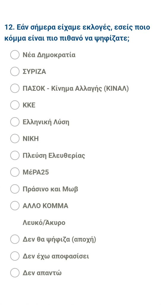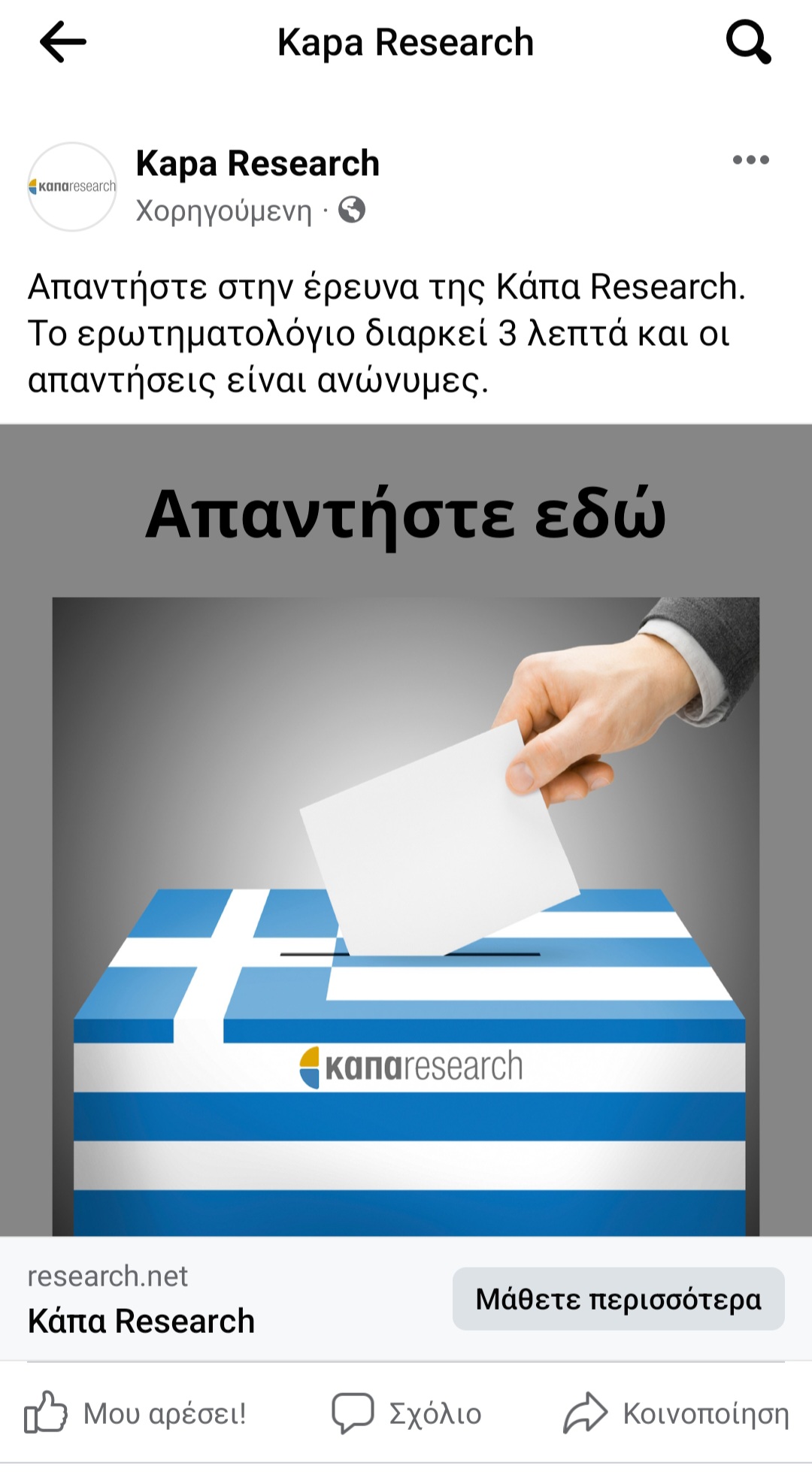Σε εξέλιξη βρίσκεται διαδικτυακή δημοσκόπηση της Kapa Research στην περιοχή μας.