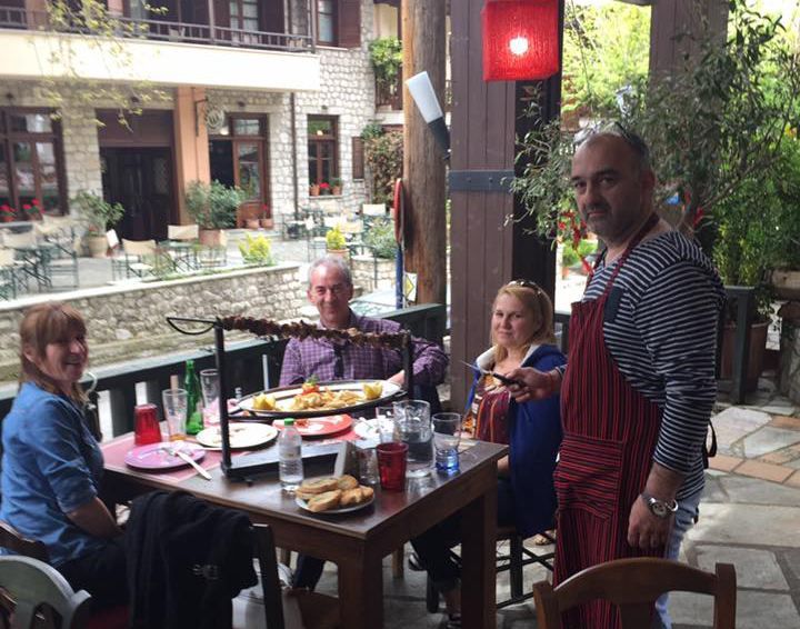 Ο ισχυρός άντρας του ορεινού όγκου, πρώην αντιδήμαρχος και alter ego του Μαράβα, ο πρόεδρος του Χιονοδρομικού Κέντρου Περτουλίου, μα πρώτα και… πάνω απ’ όλα ταβερνιάρης, δίνει πάλι ρεσιτάλ αυτό το Σαββατοκύριακο. Ο Στέφος Καλαμαράς υποδέχεται κάτω από τον ιερό πλάτανο της Ελάτης, στη πλατεία του χωριού, στο παραδοσιακό ταβερνείο του, αυτό για το οποίο μιλάει η Ελλάδα όλη (… και οι Σλαβόφωνες χώρες!!!) κόσμο και κοσμάκη. Με στιλ… Μυκόνου κάνει ακόμη κι αυτό το απλό και «ταπεινό» κεμπάπ να μοιάζει… γκουρμέ!… Διακρίνεται να σερβίρει καταλλήλως τον γραμματικό του Δήμου Πύλης, πάλαι ποτέ λαϊκοδεξιό, Γιώργο Γώγο και την όμορφη παρέα του…