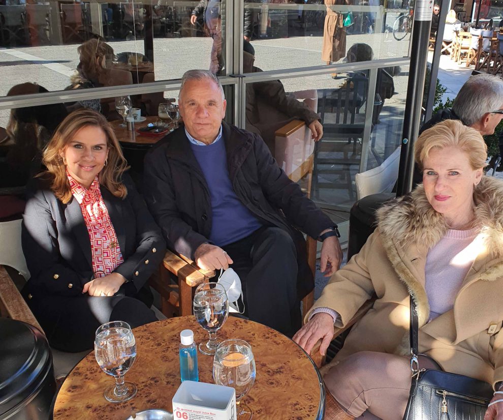 Κάθισε και τα είπε για αρκετή ώρα με τον πρώην νομάρχη και βουλευτή Ηλία Βλαχογιάννη, με τον οποίο γνωρίζονται από παλιά. Στην παρέα τους η σύζυγος του πρώην βουλευτή, Σούλα, και ο πρώην αντινομάρχης Αχιλλέας Αλεξίου.