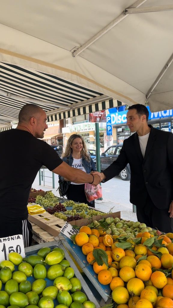 Ο νεαρός υποψήφιος δημοτικός σύμβουλος της “Επανεκκίνησης” του Νίκου Σακκά, ο οποίος συνοδεύονταν από τη σύζυγό του Λυδία και τον πεθερό του Μιχάλη Παναγιώτου, συνομίλησε με επιχειρηματίες και καταναλωτές. Στάθηκε ιδιαίτερα στη λαϊκή αγορά και άκουσε με προσοχή τους ανθρώπους του μόχθου, τους παραγωγούς που δίνουν καθημερινό αγώνα επιβίωσης στην πόλη και στα χωριά.