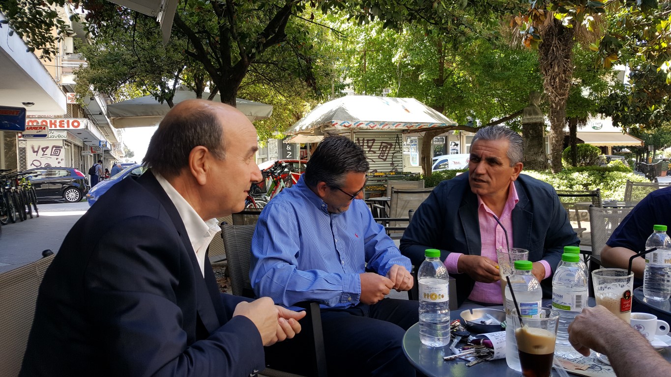 Στον απόηχο της παρουσίας Μητσοτάκη στη ΔΕΘ οι Τρικαλινοί νεοδημοκράτες συζητούν τα της επομένης μέρας. Διακρίνονται ο αντιδήμαρχος Ψύχος, ο Καρανάσιος (επιτελάρχης Μιχαλάκη) και ο θρυλικός Γεωργίου εκ της πόλεως της Καλαμπάκας… Η αλήθεια είναι πως… έναν προβληματισμό τον έχουν γενικότερα, αλλά ελπίζουν κι αυτοί σε αλλαγή του πολιτικού σκηνικού. Η ελπίδα… πεθαίνει τελευταία άλλωστε…