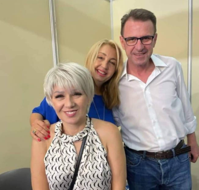 Διακρίνεται με συνεργάτιδές του από εκεί, τη δικηγόρο Στέλλα Τσιάμη και τη διοικητική υπάλληλο του Επιμελητηρίου Ηρακλείου Άρτεμη Μαυράκη.